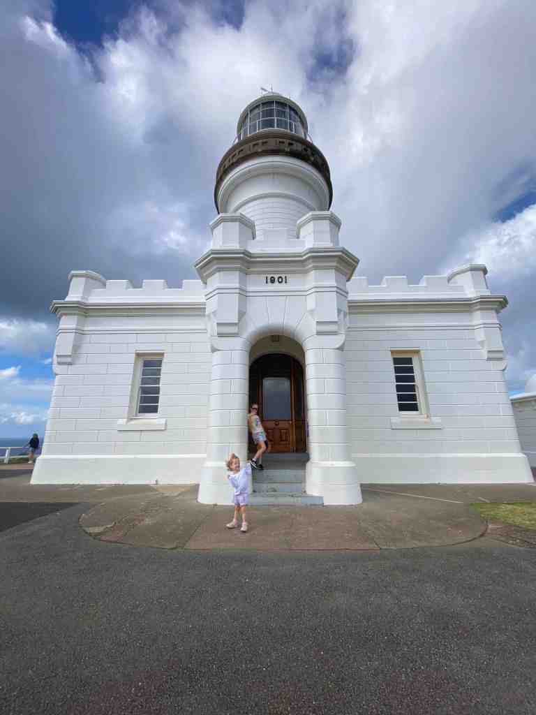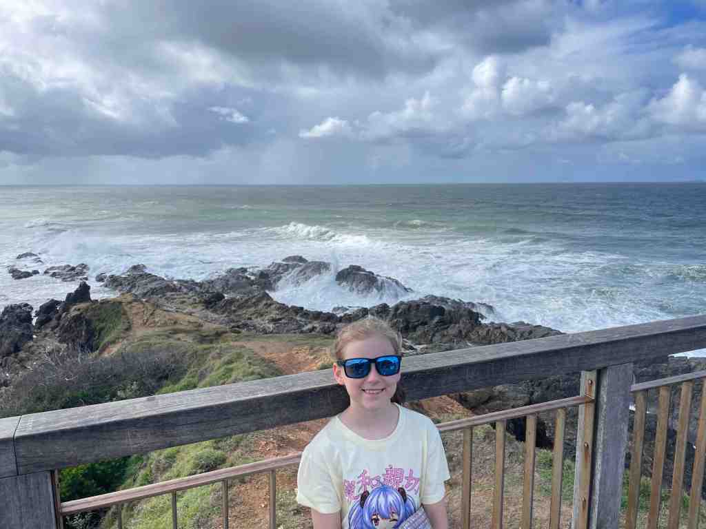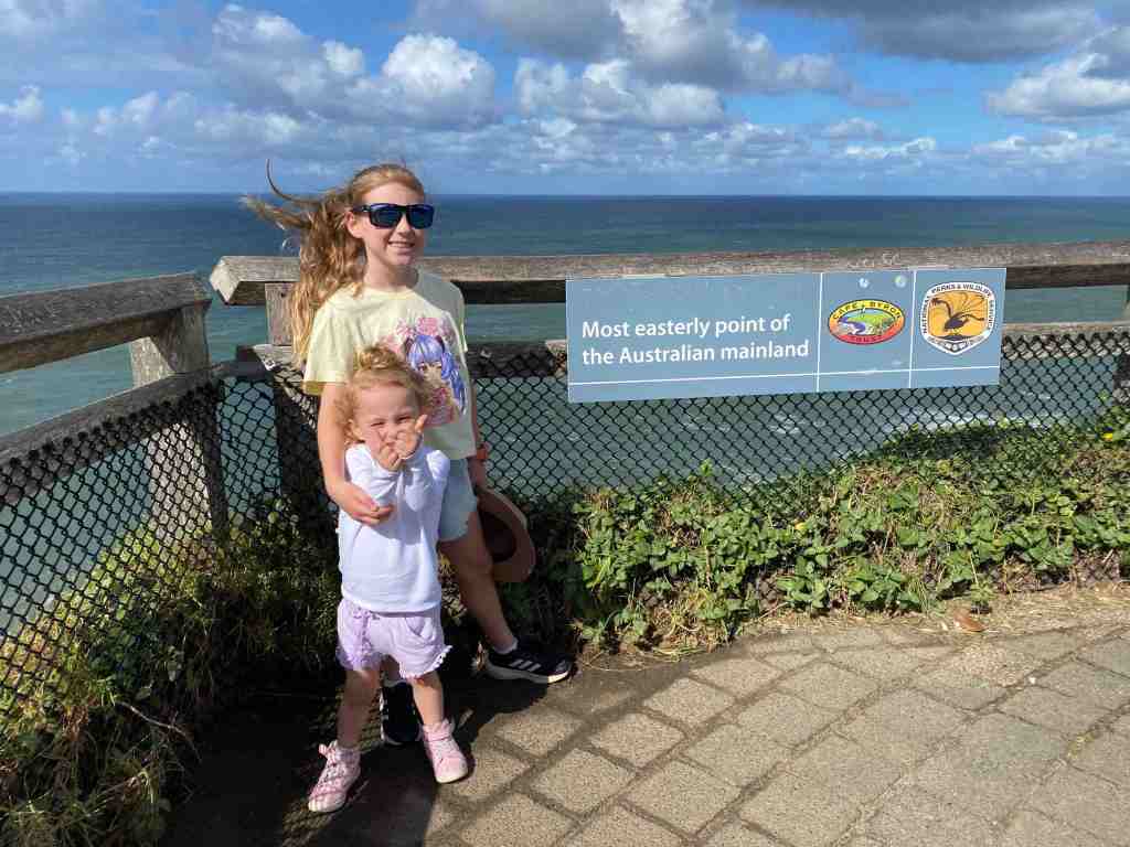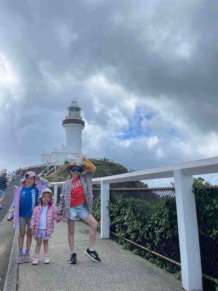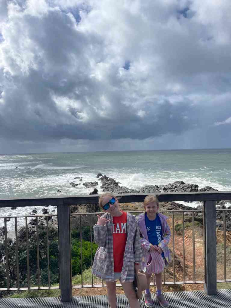 Then we were off again to head further North. There was a LOT of rain about today so we cruised along and made it to Byron around lunchtime. We’ve been wanting to visit the most easterly point of mainland Australia on this trip but the weather was just awful. So we decided to unhook the van and head into town for some lunch. The girls finally got their sushi! The rain seemed to ease a bit so we checked out the beach and drove up to Cape Byron Lighthouse. Jazzy has decided to count how many lighthouses we visit on this trip – 2 so far.