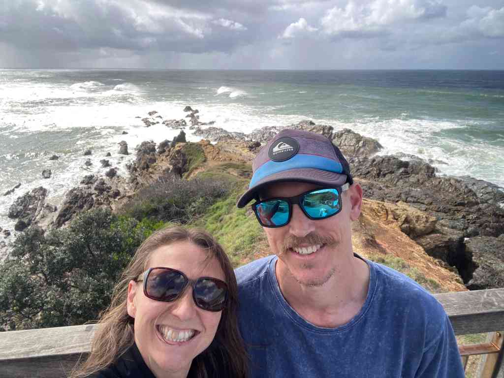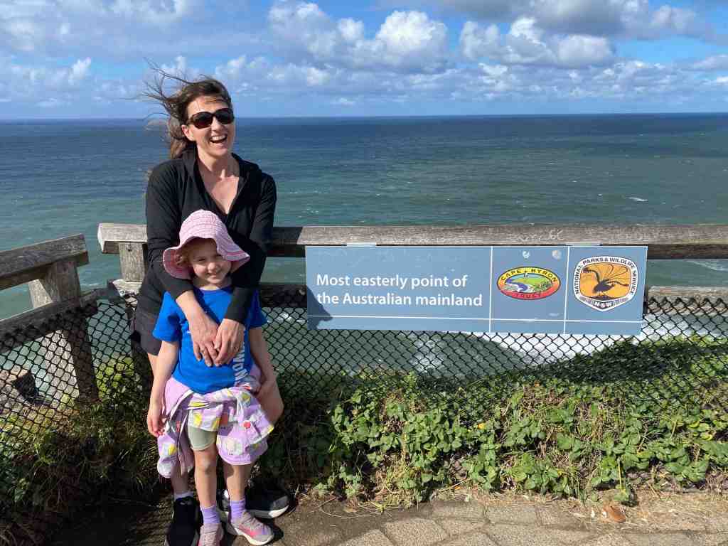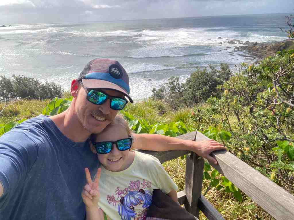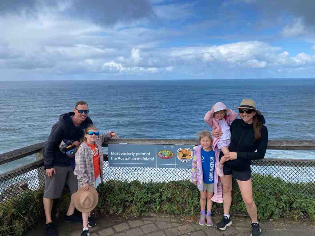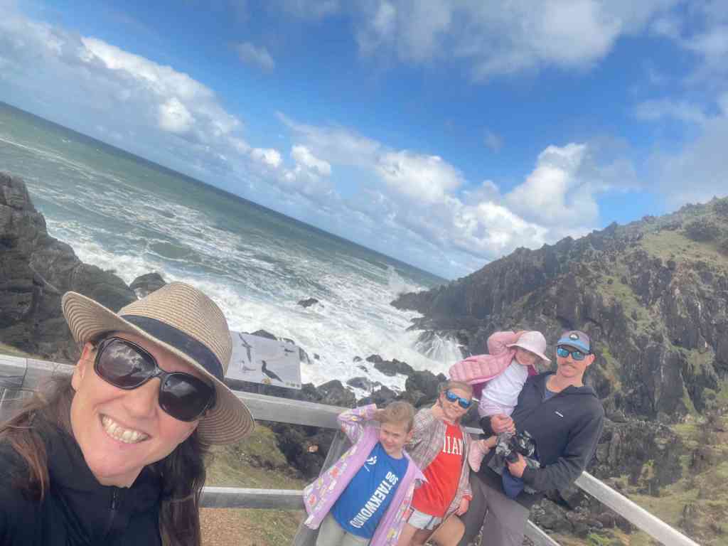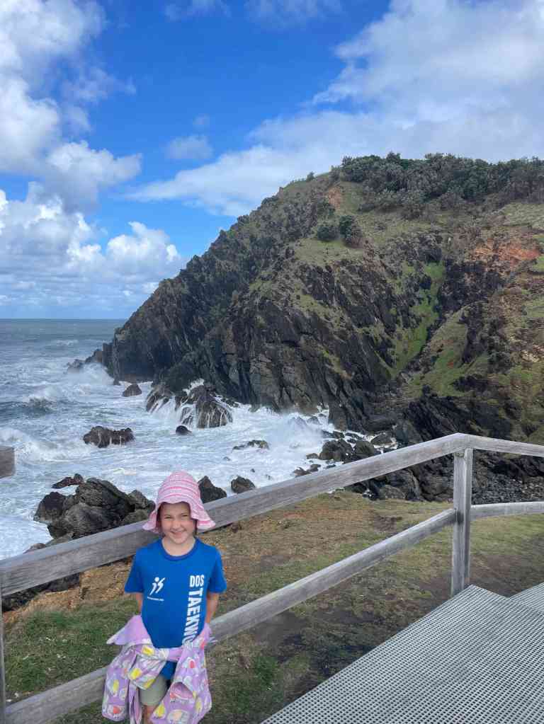 Then we were off again to head further North. There was a LOT of rain about today so we cruised along and made it to Byron around lunchtime. We’ve been wanting to visit the most easterly point of mainland Australia on this trip but the weather was just awful. So we decided to unhook the van and head into town for some lunch. The girls finally got their sushi! The rain seemed to ease a bit so we checked out the beach and drove up to Cape Byron Lighthouse. Jazzy has decided to count how many lighthouses we visit on this trip – 2 so far.