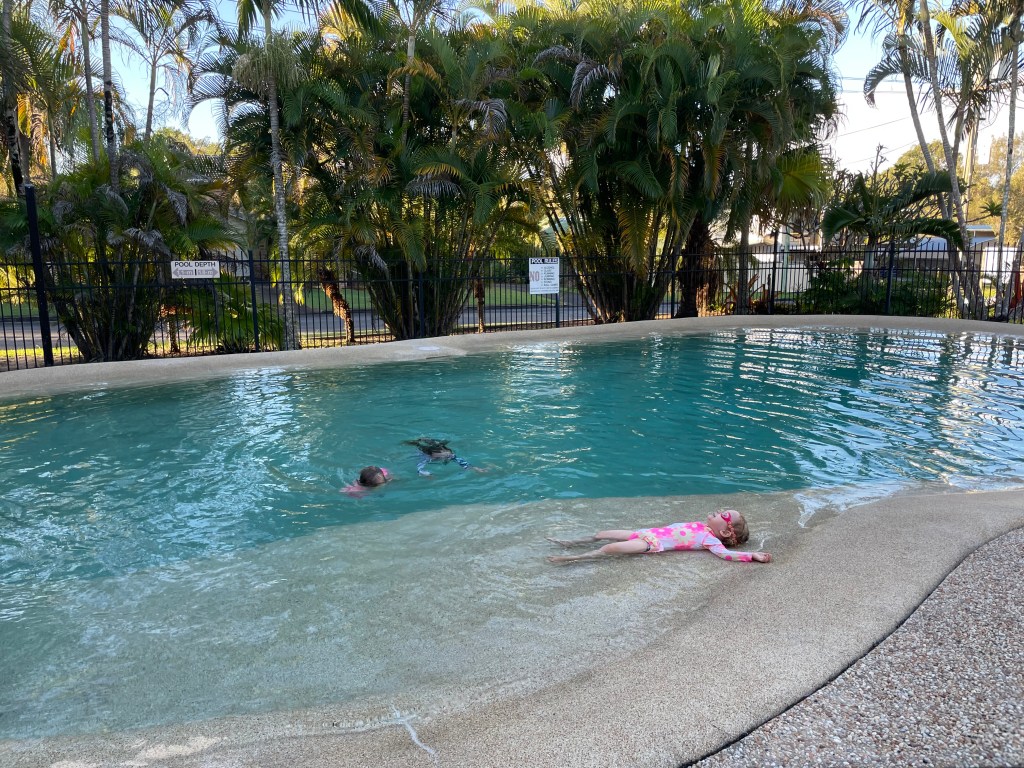 After a quick lunch, it was back on the road and to our final destination of Tin Can Bay. I had some noisy bird neighbours as I tried to do my meetings, but there was a huge and spacious camp kitchen which made for a comfy office space. Working on the road is the newest adjustment to our routine, but so far so good!
