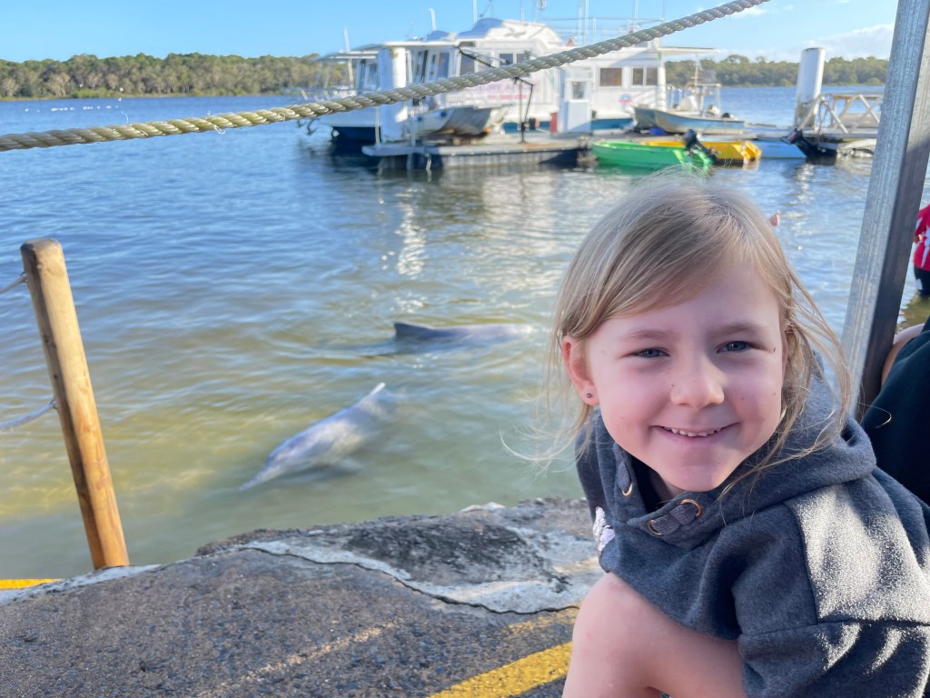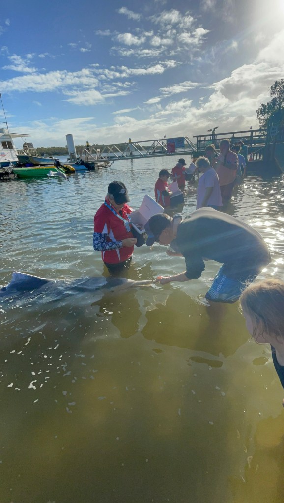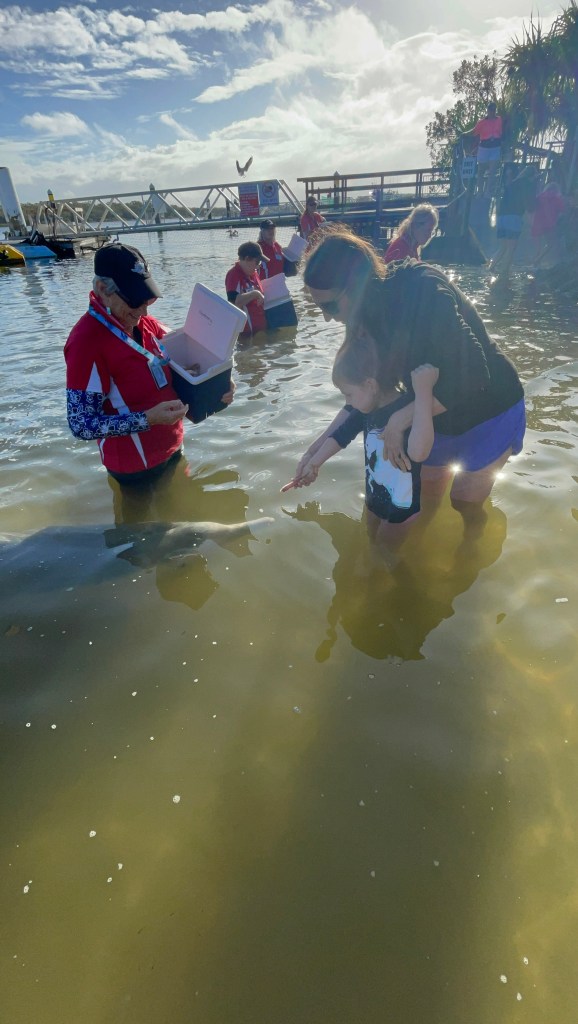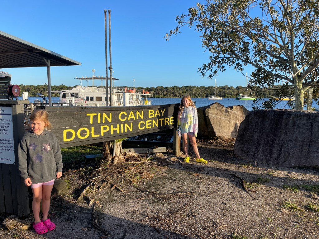 It was a very early start to the day in anticipation of feeding the dolphins at Tin Can Bay. We grabbed a quick bite before getting to Barnacles Dolphin Feeding for 7am. The lovely volunteers checked everyone in and shared lots of information about the Australian Humpback Dolphins while we patiently waited for more of the pod to arrive.