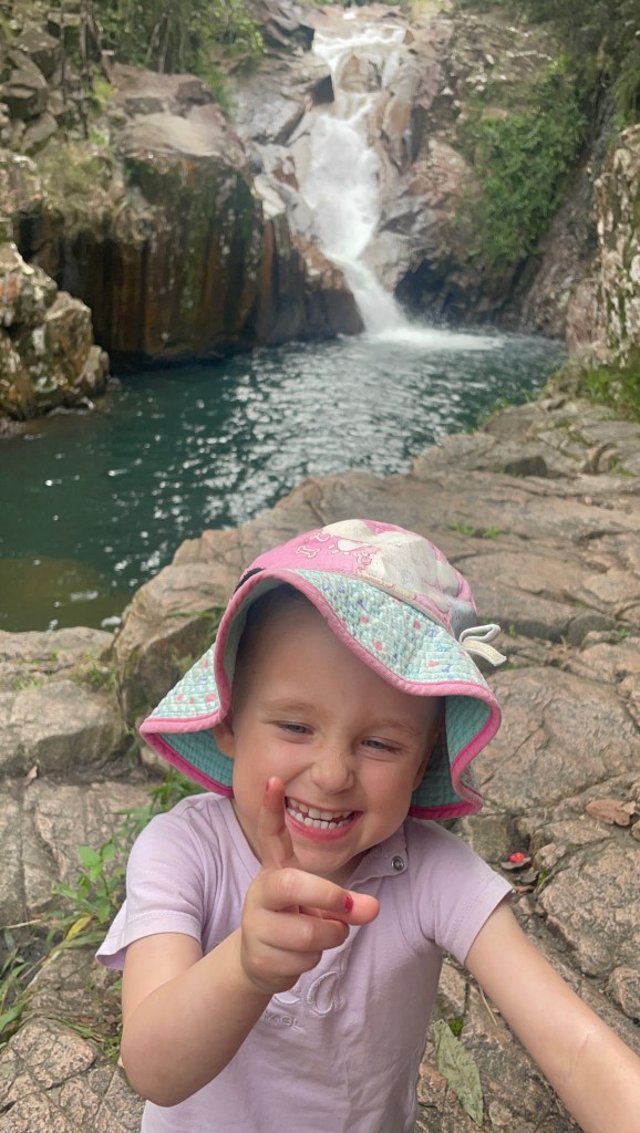 Araluen Cascades were beautiful and all the recent rain certainly added to the experience of having more water in the waterfalls. The girls were so keen to jump in, but a few of the warning signs put us off so they just got to touch the water and splash their faces. We had to promise them a swim later in the day instead to avoid backlash. We enjoyed some snacks (always pack ALL the snacks when you’re going anywhere with kids). Then it was back to the car to pick up our van and head off to the next destination – Cape Hillsborough.