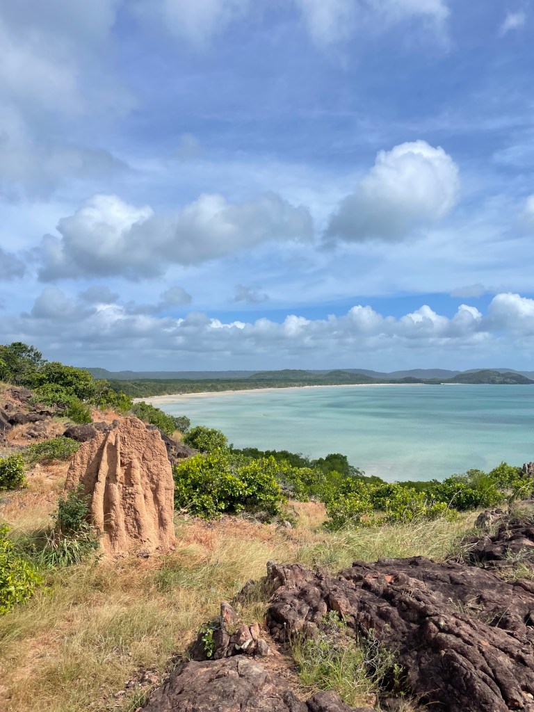 It’s so cool to think we made it after all this planning! It was a really windy day but otherwise stunning – the views of the islands around, the water, the beach and all of nature. Definitely a moment for the memory bank from this trip!