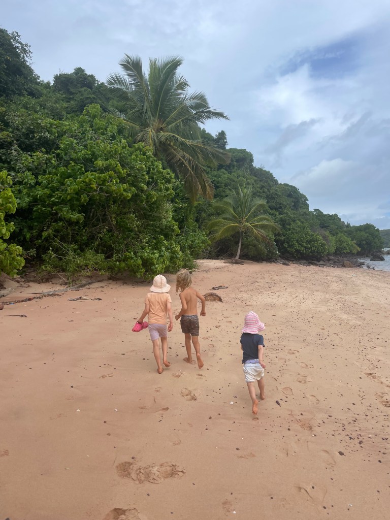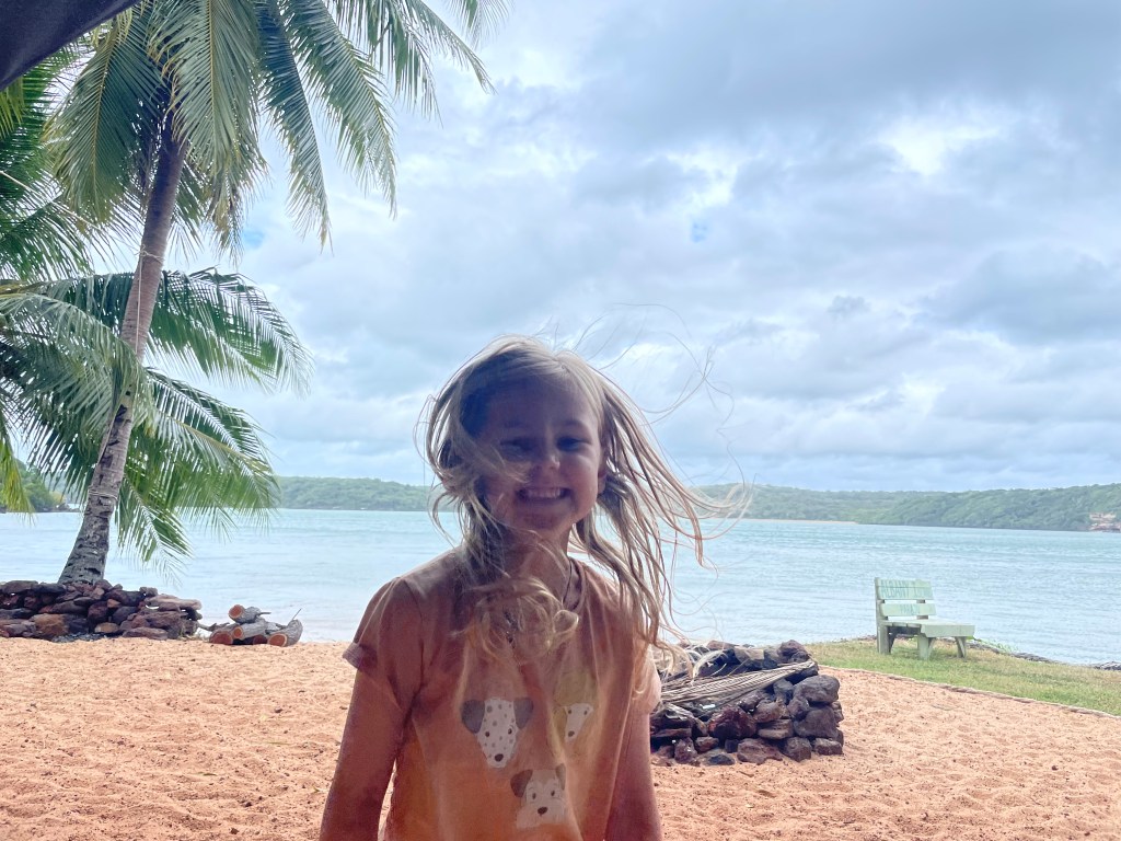 We grabbed a spot by the beach, had some drinks and the most delicious fish & chips and seared tuna. I wasn’t sure whether the girls would like it, but they wanted another round! So we stayed some more and the local boy Jai, whose family live on the island and run the transfers and some charters entertained us with stories and games for the girls. They also shared notes on homeschooling and how much they all disliked it compared to going to school with friends….