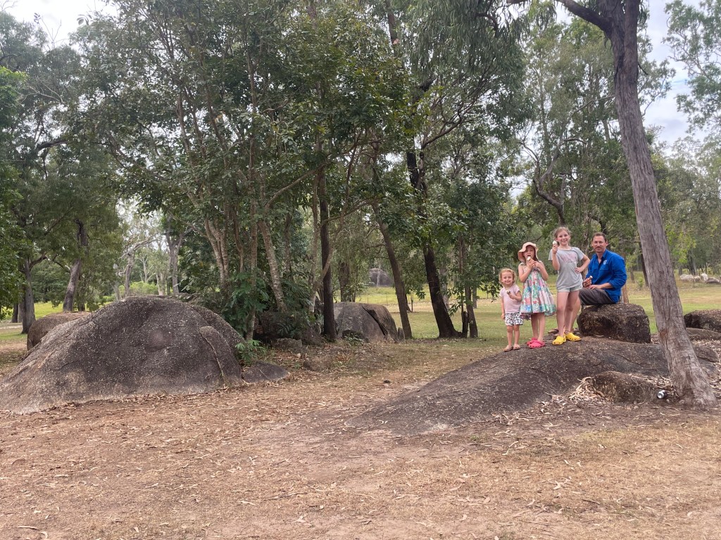 With slightly broken spirits, we arrived and set up. To thank the kids for (mostly) being so patient on our long driving day we grabbed out some ice creams that they all enjoyed. After while Chris and I set up, the girls cracked on with a bit of homework and then roamed around the campsite exploring some of the cool rock formations around the site.