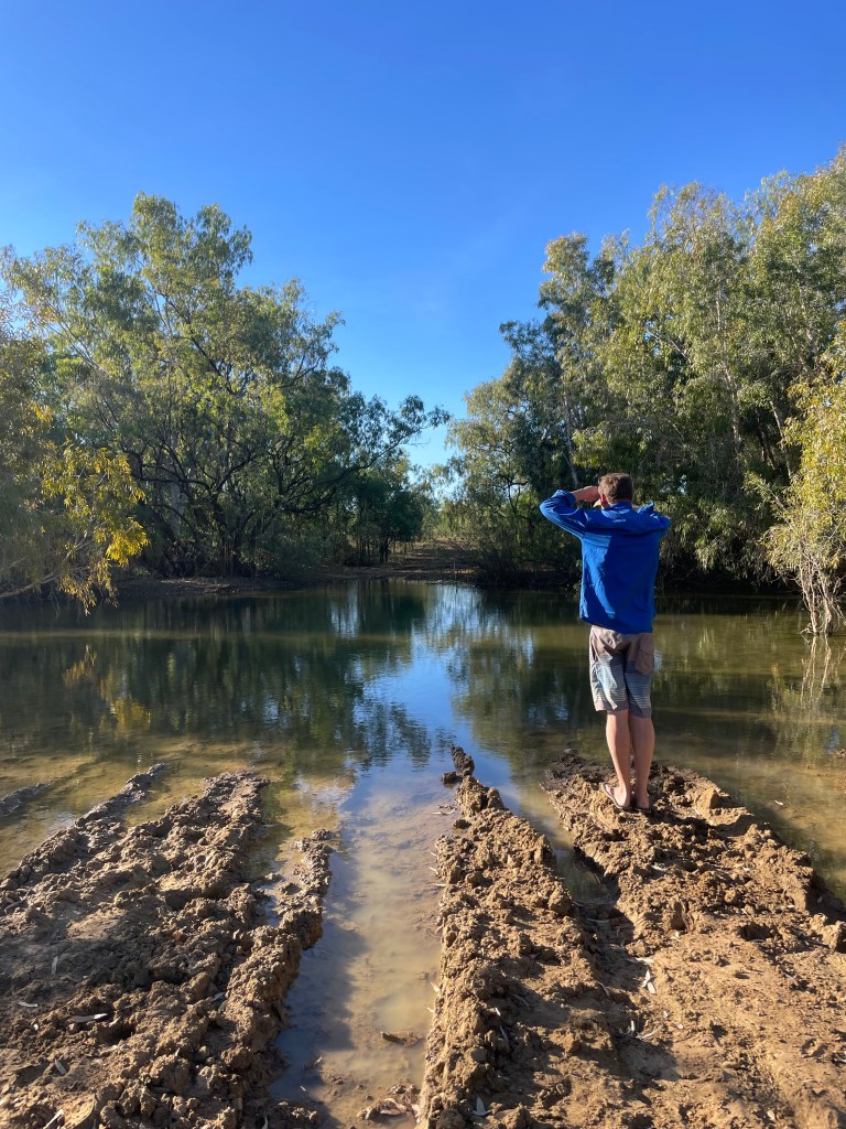 The croc sighting really didn’t help with the idea of getting bogged in the middle. I think we considered our options for about an hour – tossing up whether we risk it and save time or turn back on ourselves and add another 3 hours to our long day. In the end, we just couldn’t justify risking getting bogged in the middle of croc infested waters with the whole family at dusk time with no one around.
