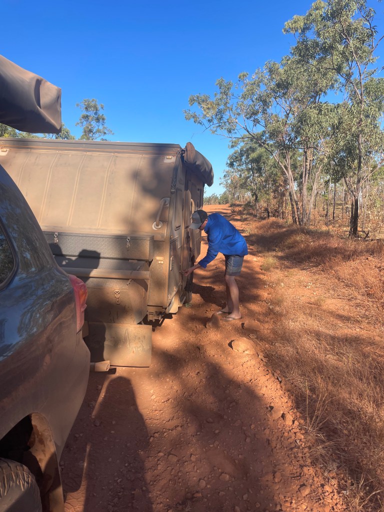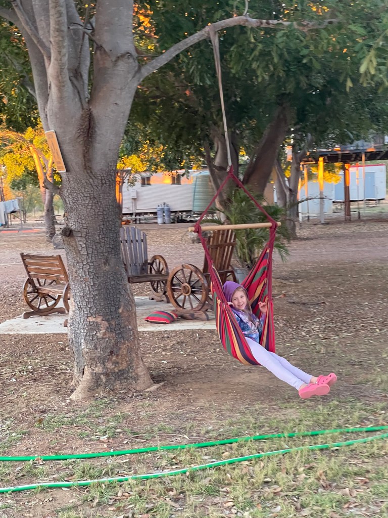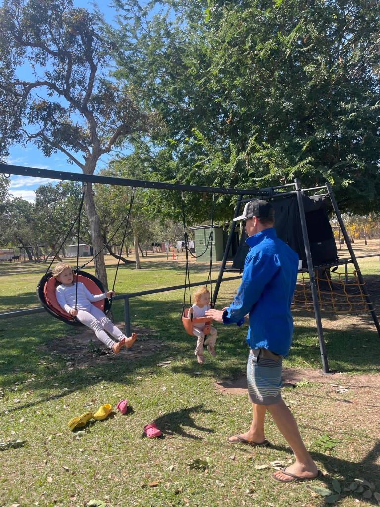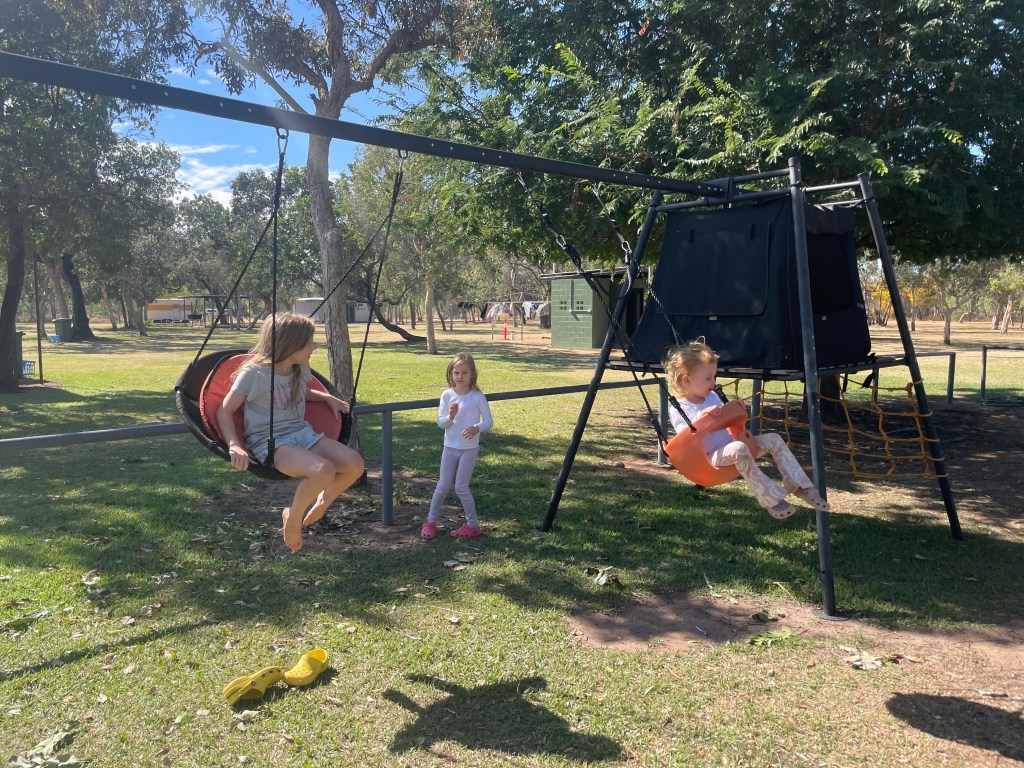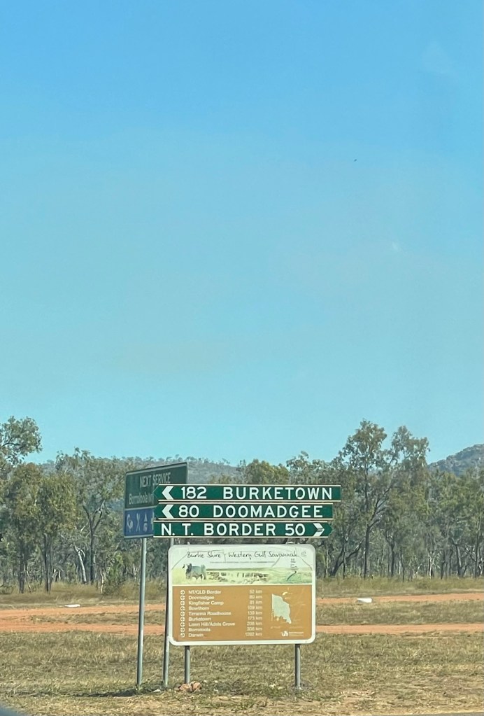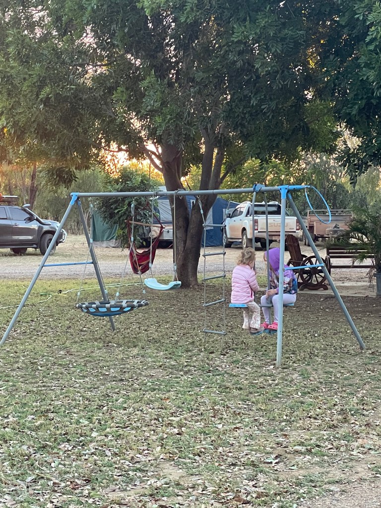 There weren’t many stops along the way, as communities such as Doomadgee are closed communities. When we finally reached Hells Gate Roadhouse it was like an oasis surrounded by dirt and red dust. It had lush gardens, a lovely bar/cafe area and a nice playground for the kids. We all felt a pang of disappointment that we didn’t get to stay here last night… but safety first.