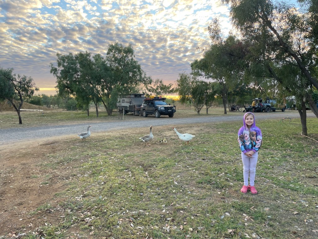 The roosters and other farm animals were up early this morning and made themselves heard. It proved to be a great distraction for the girls while Chris and I packed up. It was also great to see a little playground at the caravan park, the girls loved being right next to it so they could entertain themselves!