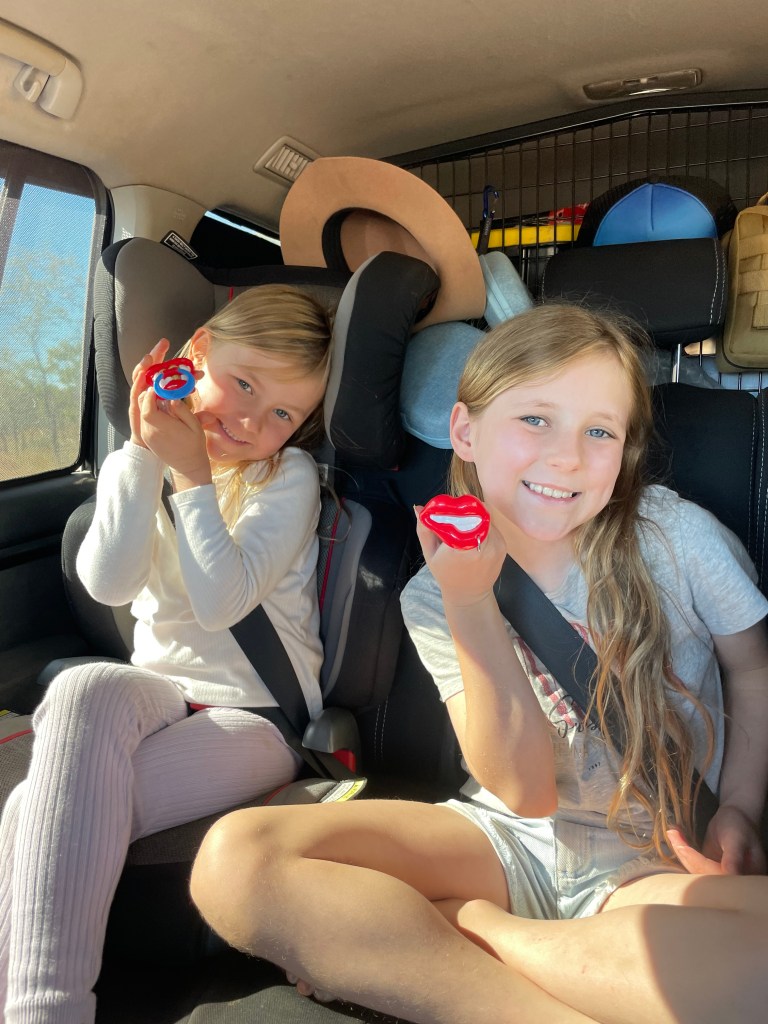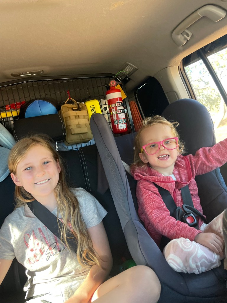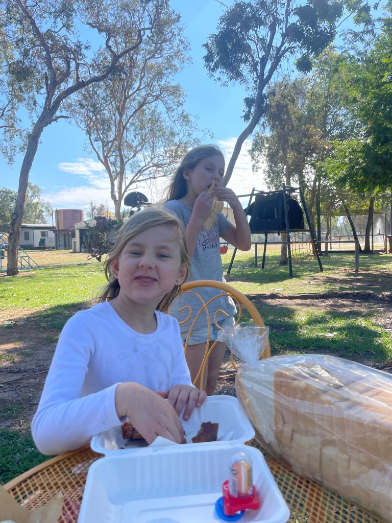 We met Jenny who had so kindly chatted us through our best options yesterday and she was so kind and offered us some power to plus into for an hour to recharge the van. So we grabbed some snacks from the cafe and the girls enjoyed a runaround while I now had a convenient stop for my meeting! To top the universe looking after us, a tour guide from an organised tour brought us a big bag of snacks and biscuits from their leftover morning tea. Winning!