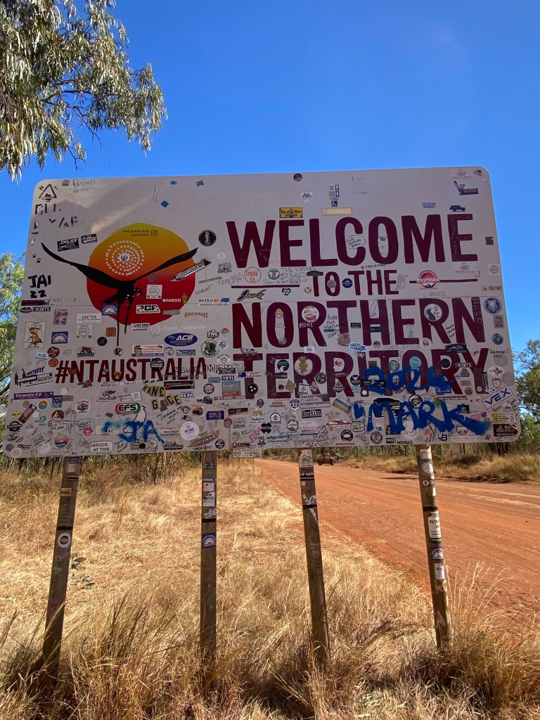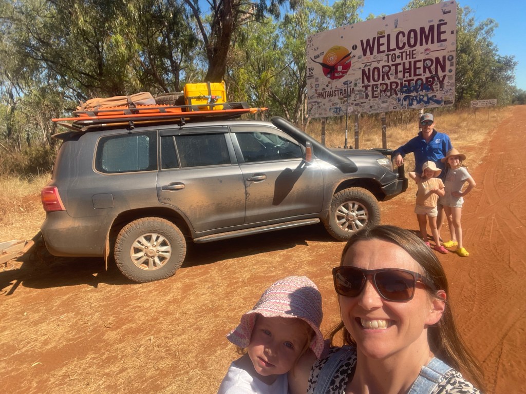 Before we knew it we were at the QLD/NT border and were lucky enough that a nice bloke from a local cattle station happened to be driving past to take a photo of the whole family. He said the cattle station he worked on was 3 million acres – I can’t even fathom the size of that!