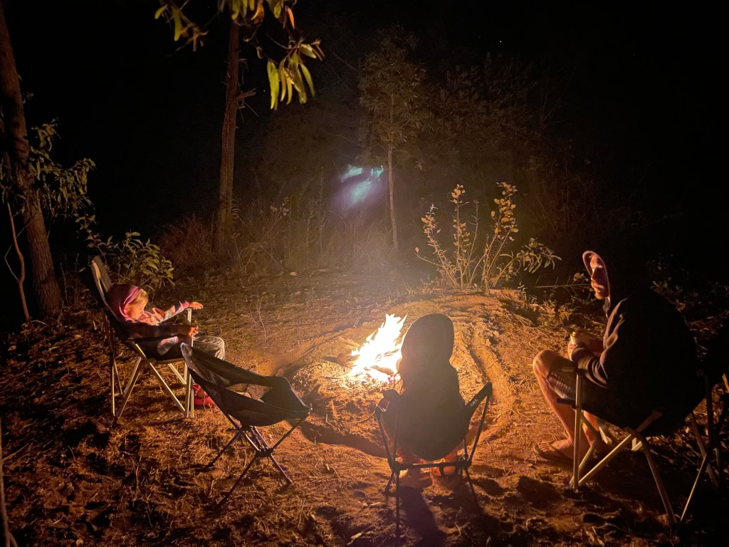 It was a quick dinner and some more stargazing for the big girls. I thought I had read somewhere that there would be a meteor shower tonight, but we certainly didn’t see any more than normal. The stars were however gorgeous and the fire was a nice touch from the cold evening weather.