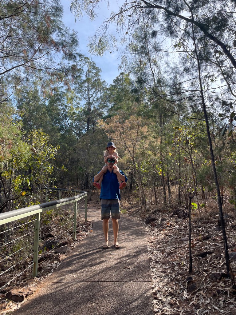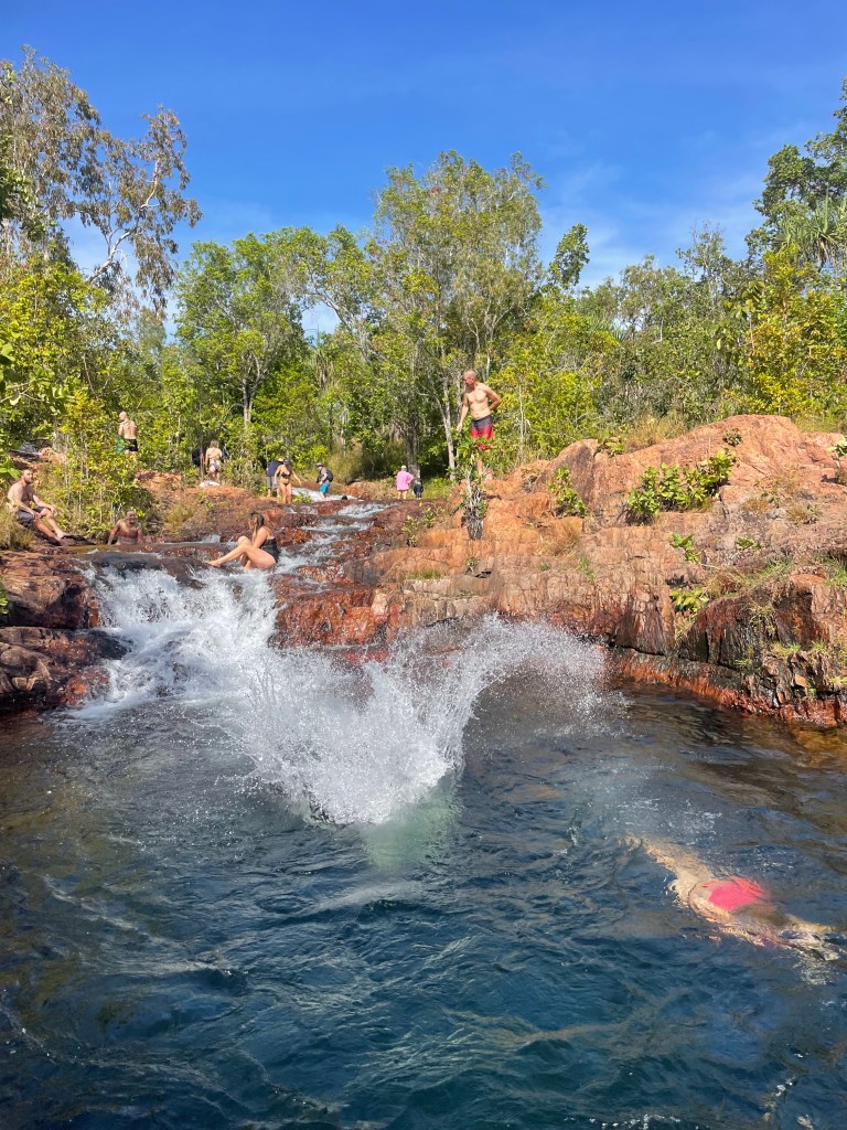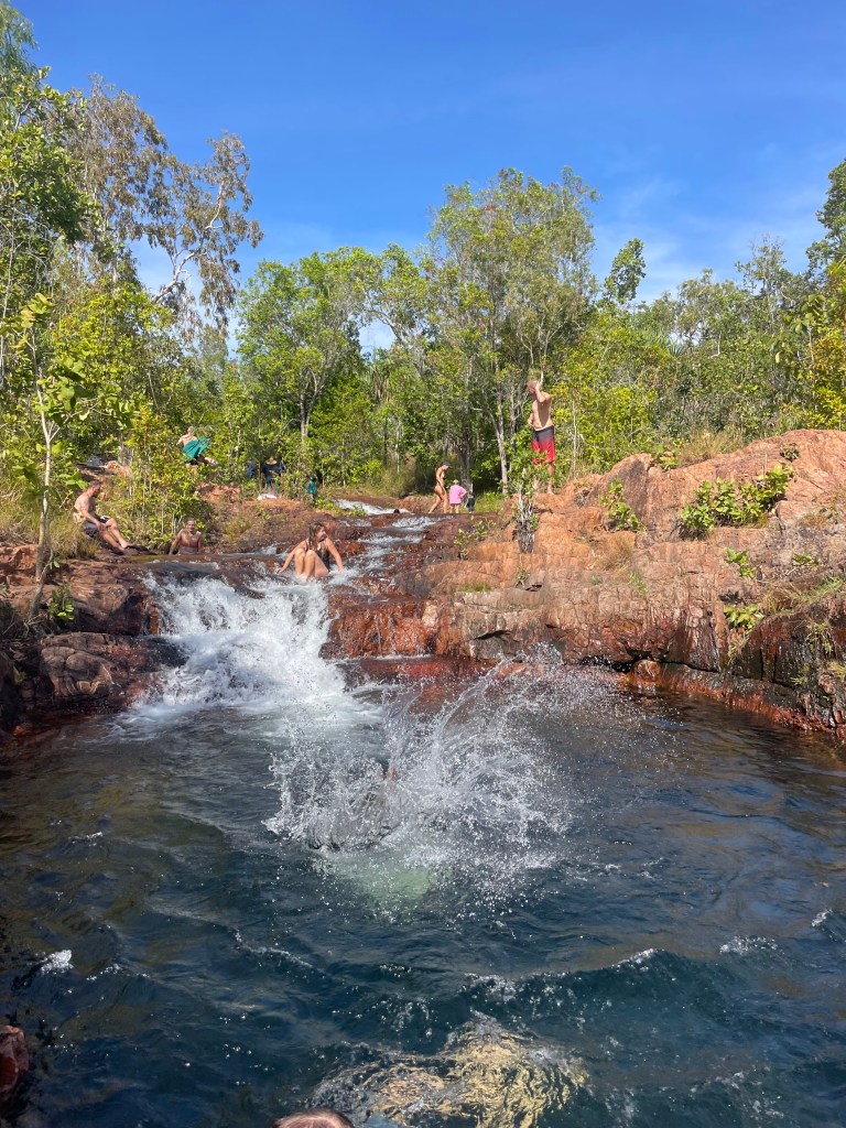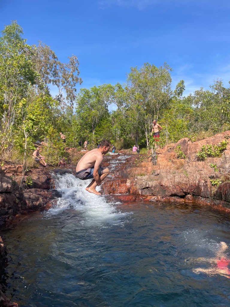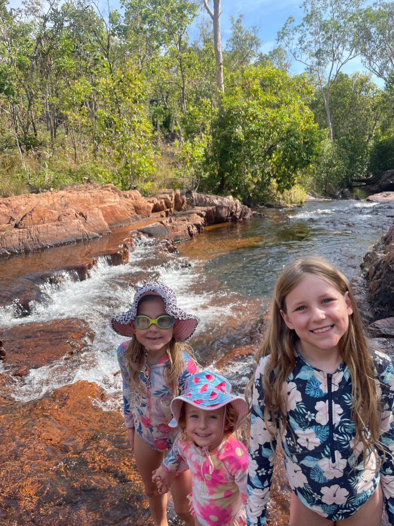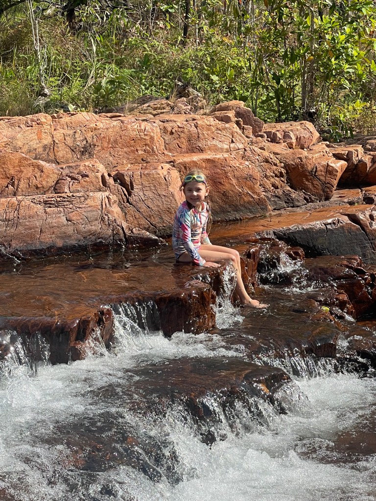 It was a busy day of driving and sightseeing, but we made it to Edith Falls with enough time for a swim. The water was freezing when you first jumped in, but swimming out a bit further to where the sun hit the water was nice and even the girls got more comfortable with the idea.