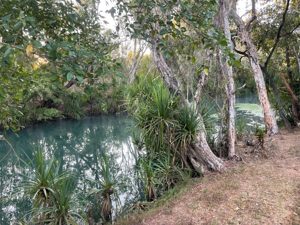 I think everyone was glad to stretch their legs and explore. The water behind the caravan park looked ideal for crocodiles, but so pretty. Jazzy also spotted a hawk nest in the tree above with both parents coming back to feed the little bub all afternoon.