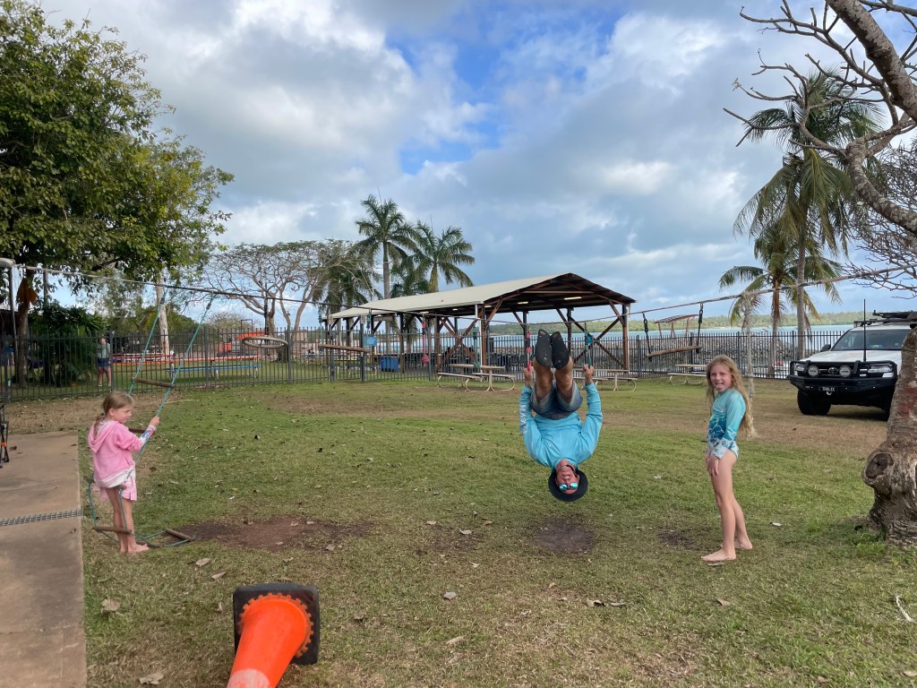 Back on land it was back to perfecting flips on the monkey ropes. Chris was trying to show the girls up…