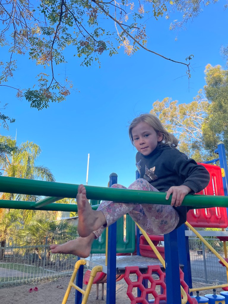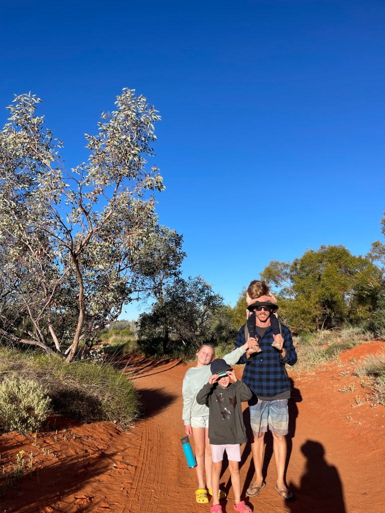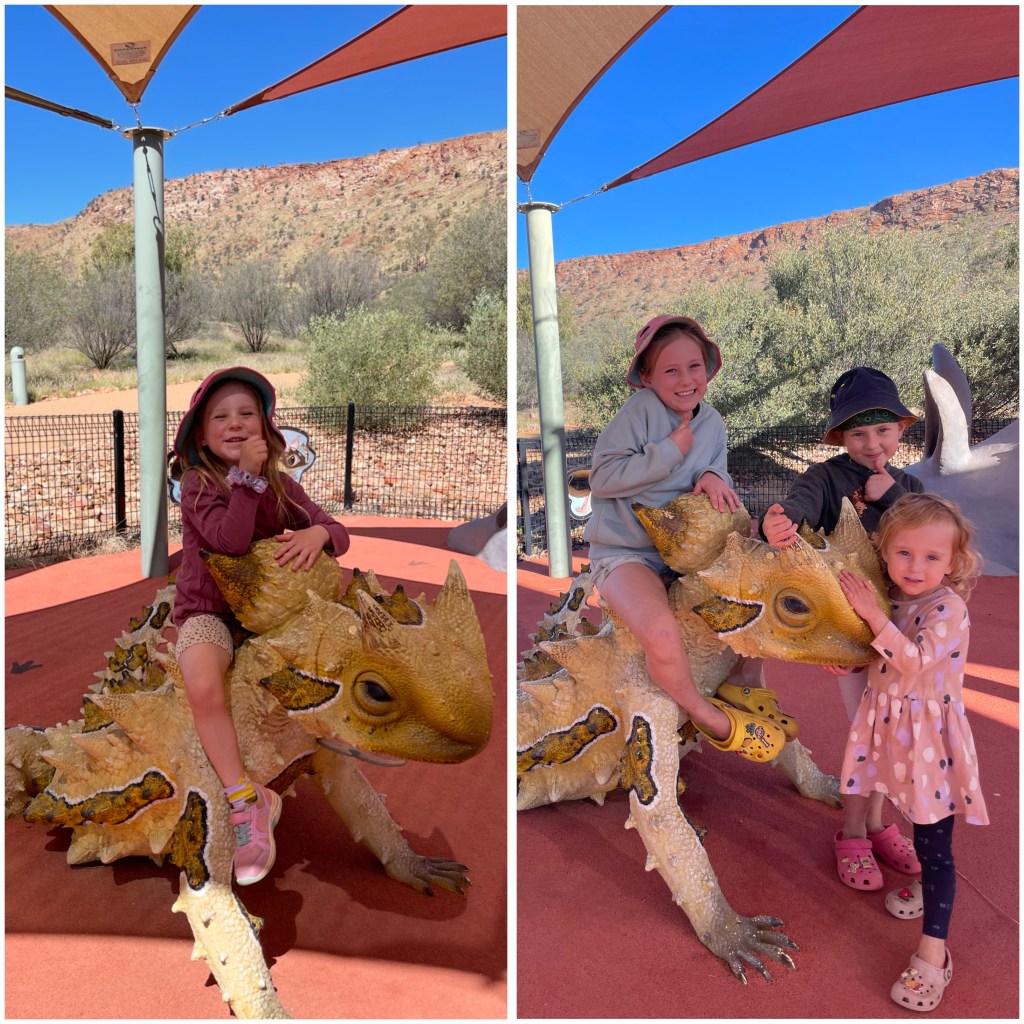 In the afternoon we headed out to Alice Springs desert park, a firm favourite from our previous visit to Alice Springs. We even recreated a photo from 4 years ago at the little playground there. Last time Jazzy was fast asleep in the pram when we took this one of Izzy but this time we got the whole gang in there.