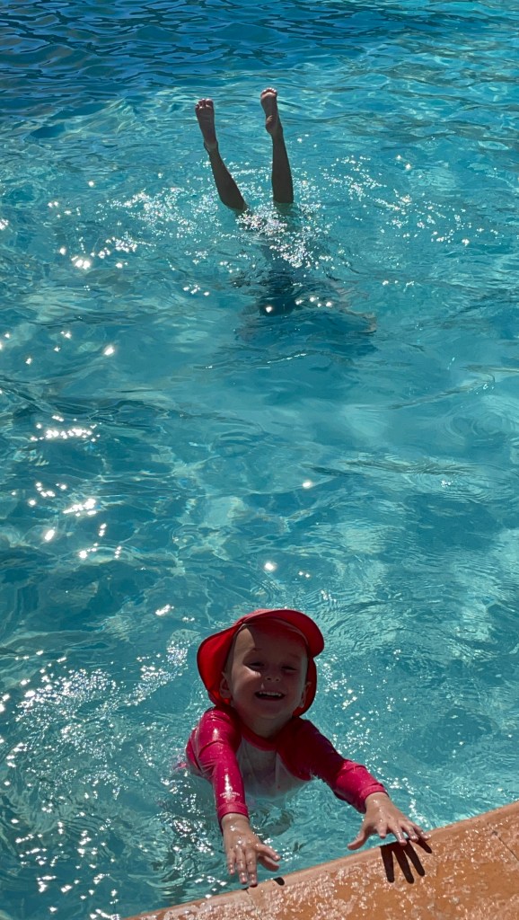 It was hot, so the chosen family activity for the rest of the afternoon was the pool! Although strangely enough, the big pool was actually heated and so not as pleasant when you are trying to cool off… but that didn’t stop the girls from being in there for hours, splashing, diving and living their best lives.