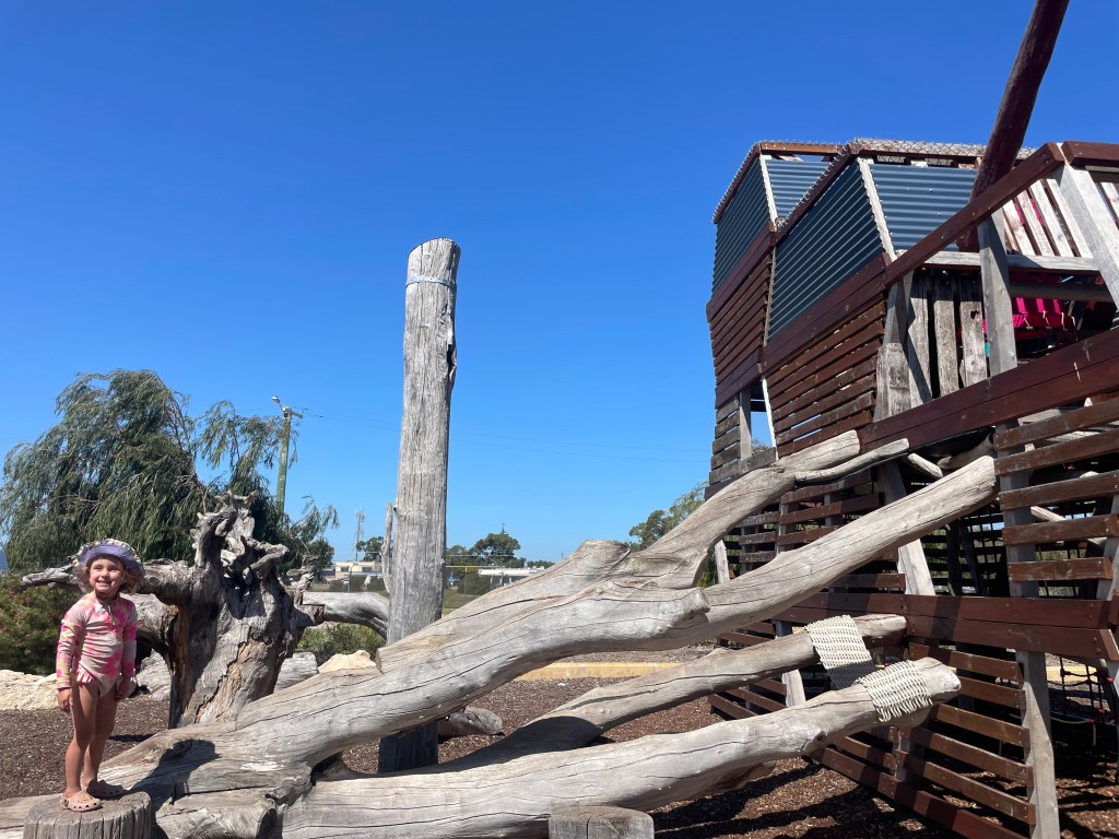 I was particularly impressed by the way they used a lot of recycled materials, such as washed up buoys and driftwood as climbing equipment. Overall, I must say WA has had some of the most incredible playgrounds on our travels and the girls are loving it!