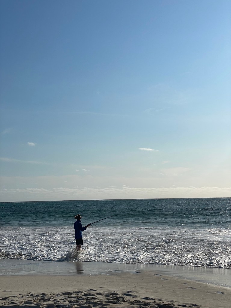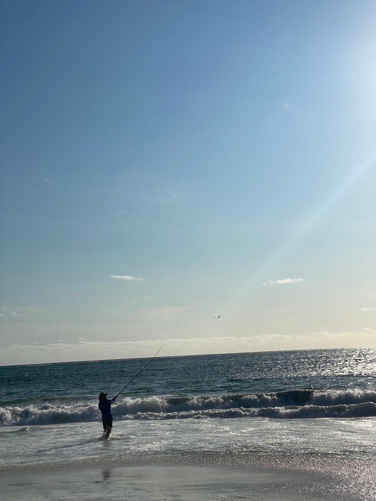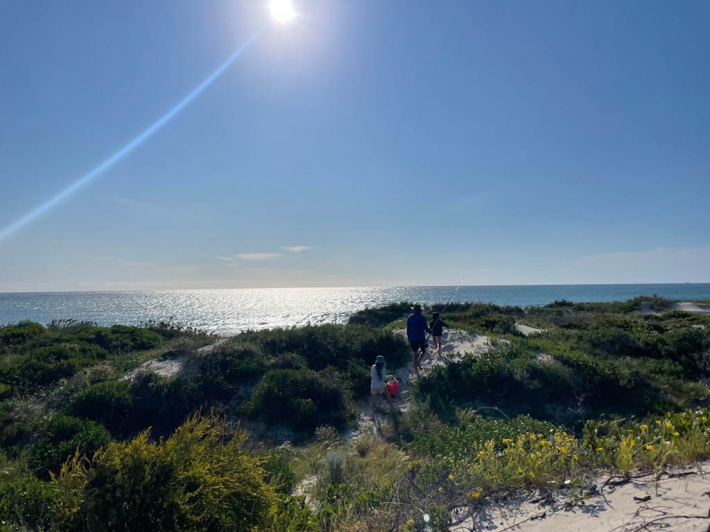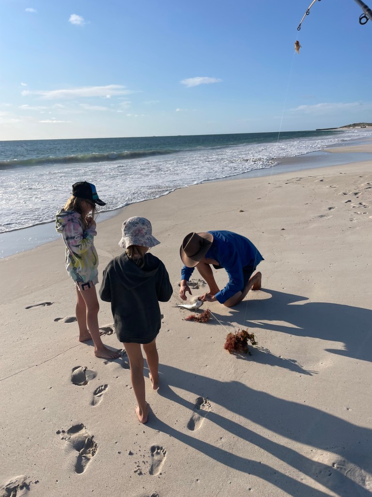 Chris finally put the beach rod to use and managed to get a tailor. The girls were stoked and he kept trying but as it got later in the afternoon, he and all other fishermen were just catching seaweed galore! There were tunes blasting from one of the cars on the beach and we enjoyed a cheeky beverage.