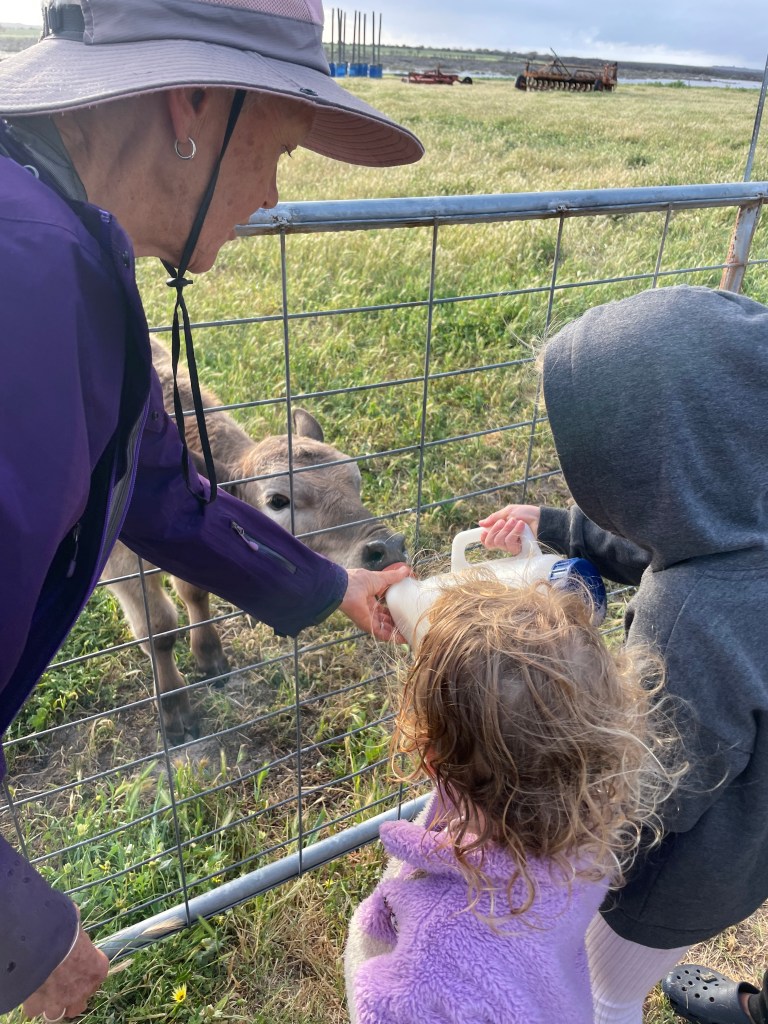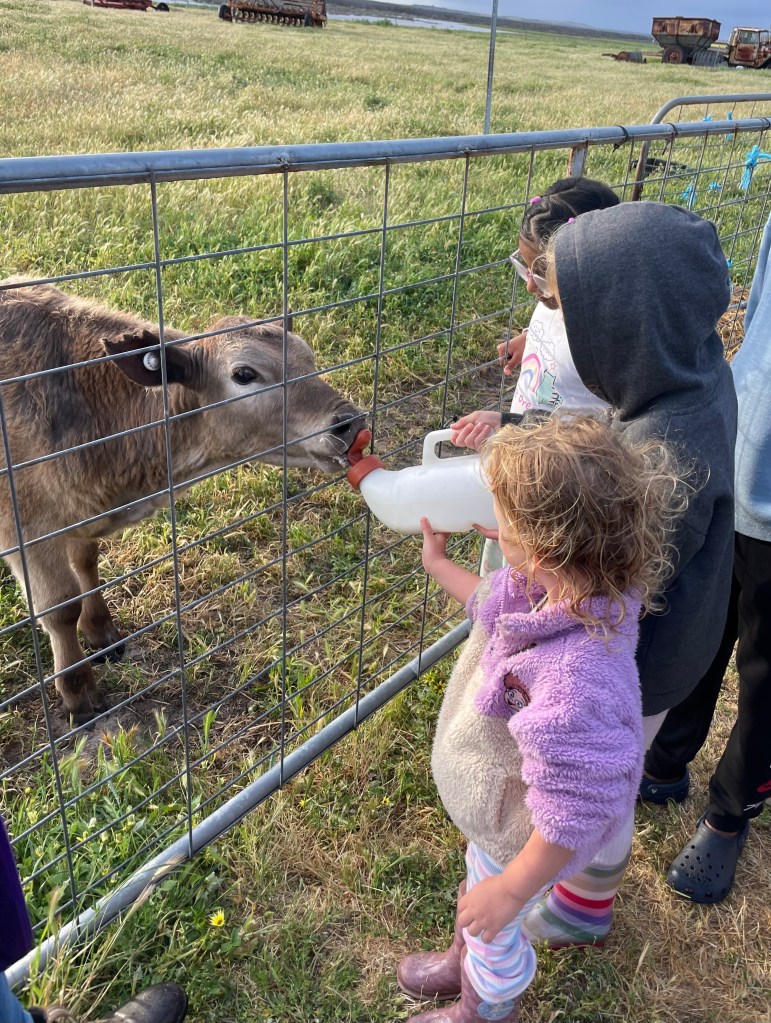 The kids got to feed farm animals too, including carrots to a donkey, a special grain mix to the sheep and milk to the baby calf, that is only 4 months old.