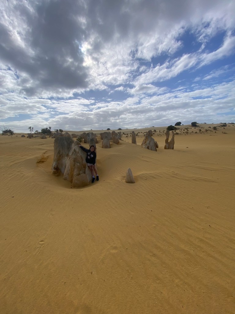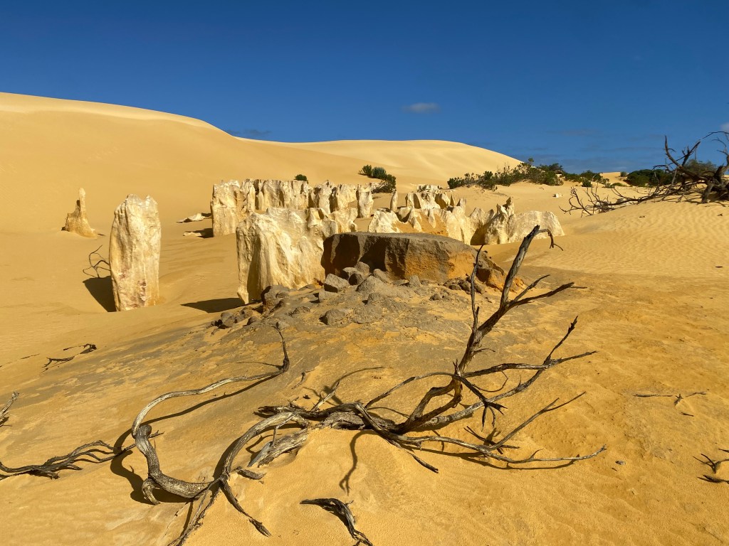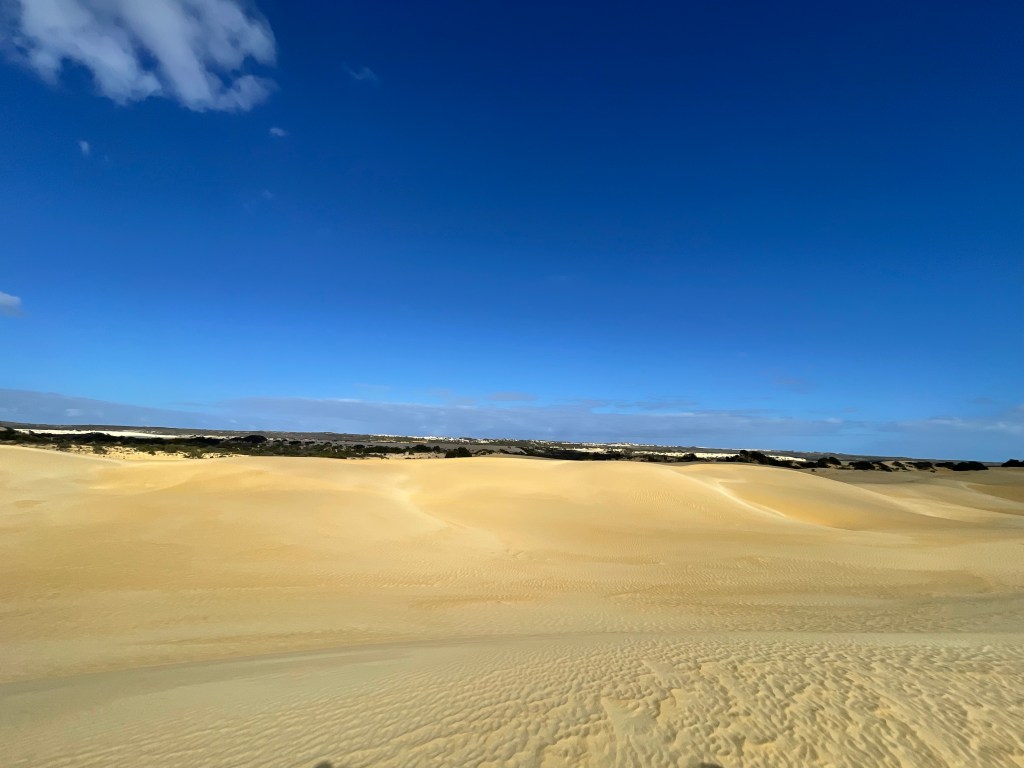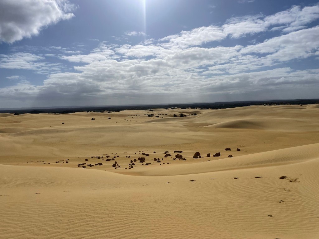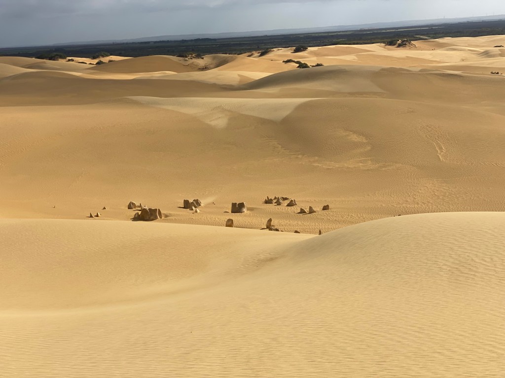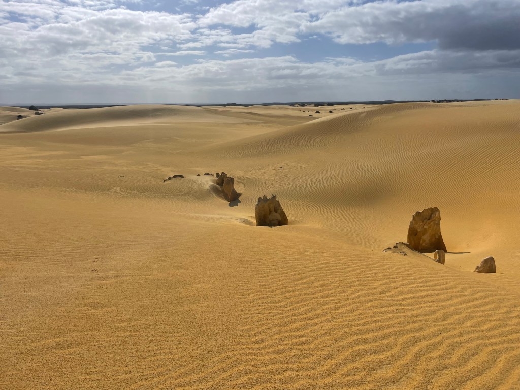 The view over the farm was gorgeous and we were lucky that yesterday’s drizzle had finally cleared. Nambung has special private access to the back of the Pinacles desert, which gives for a very private and unique view of the limestone formations.