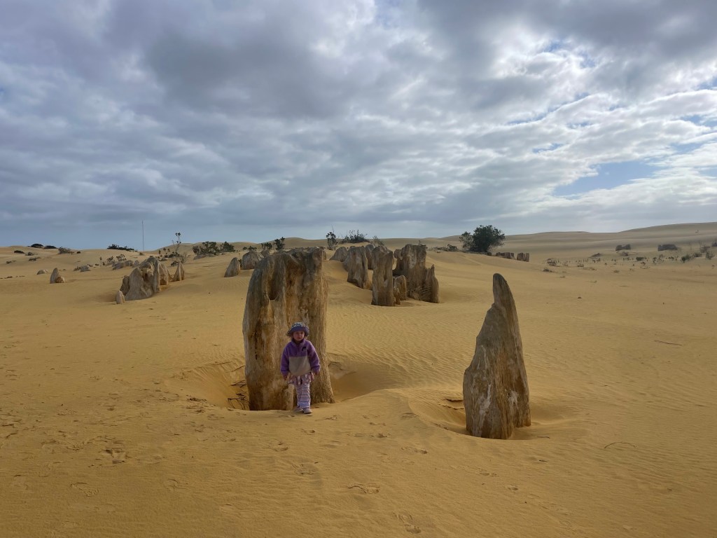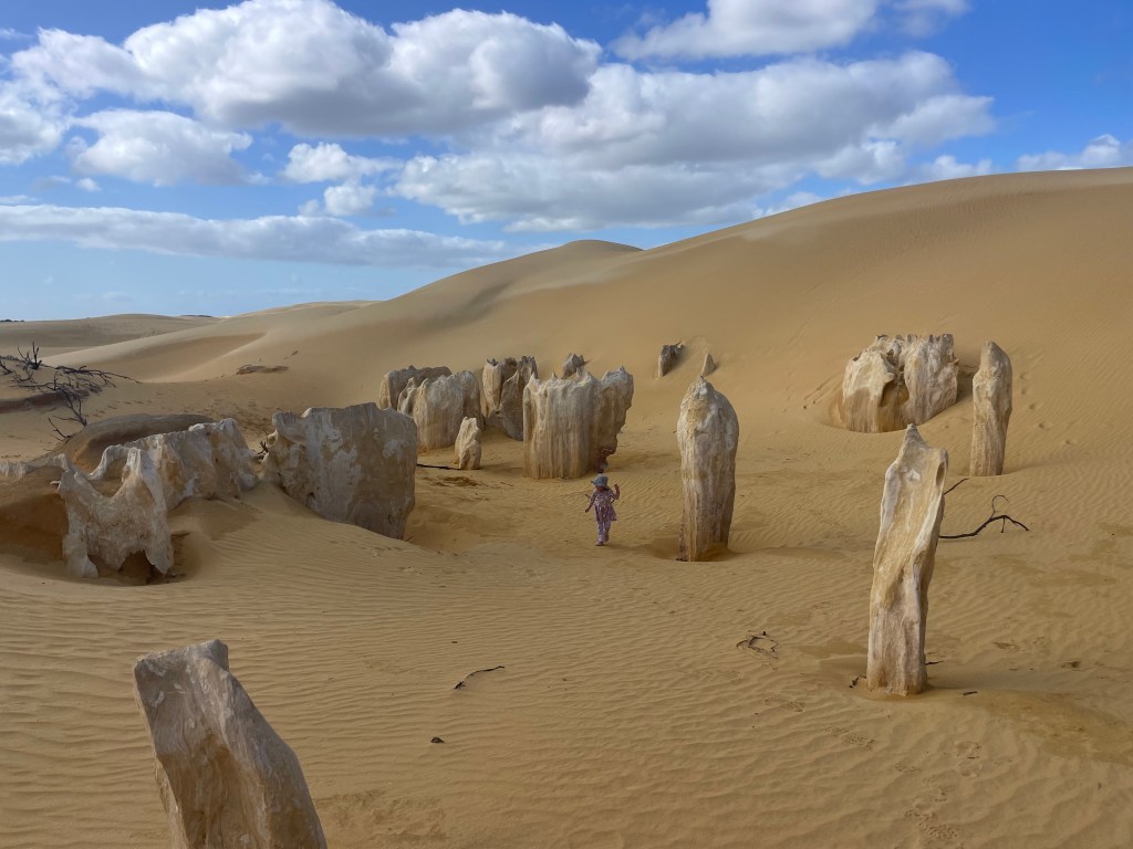 We headed over the large sand dunes to a cluster of small pinnacles, which had only recently been exposed due to changing winds. The kids felt like they were on Mars, but enjoyed running around them and looking for other ones.