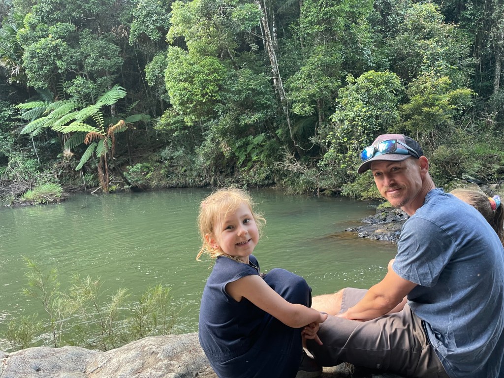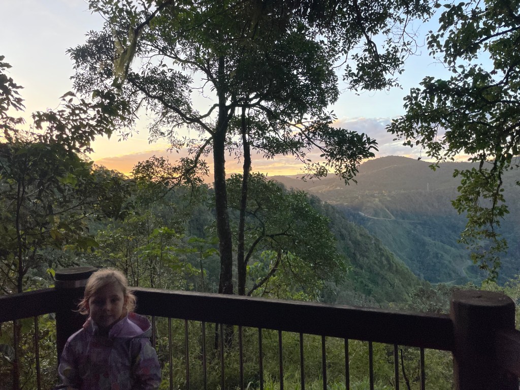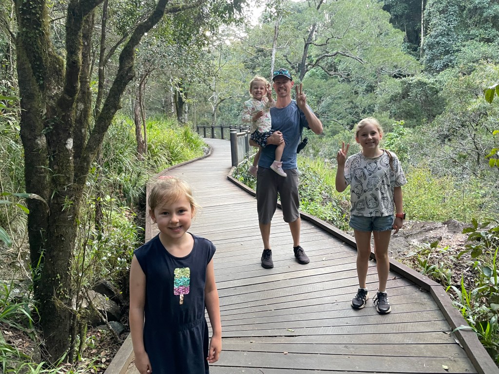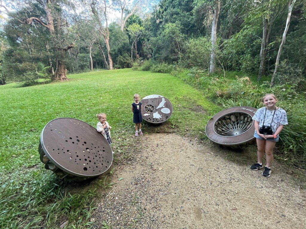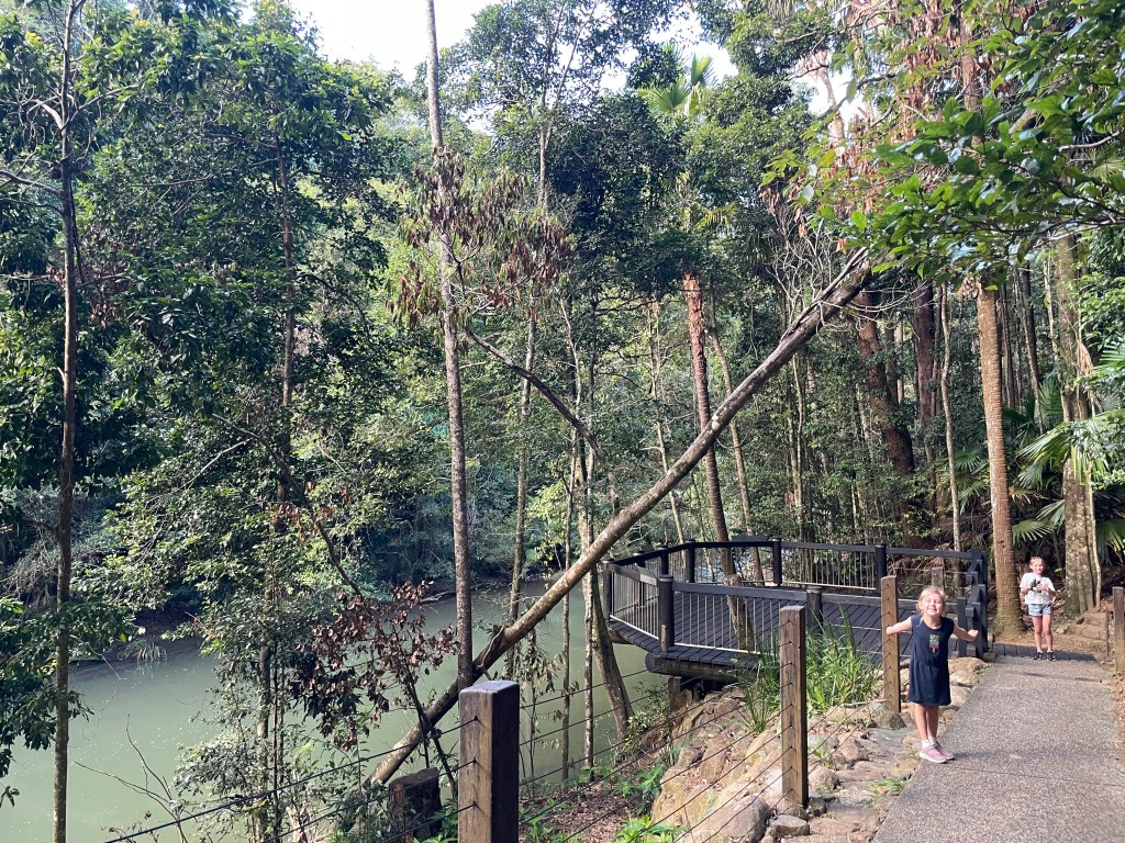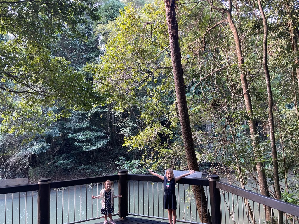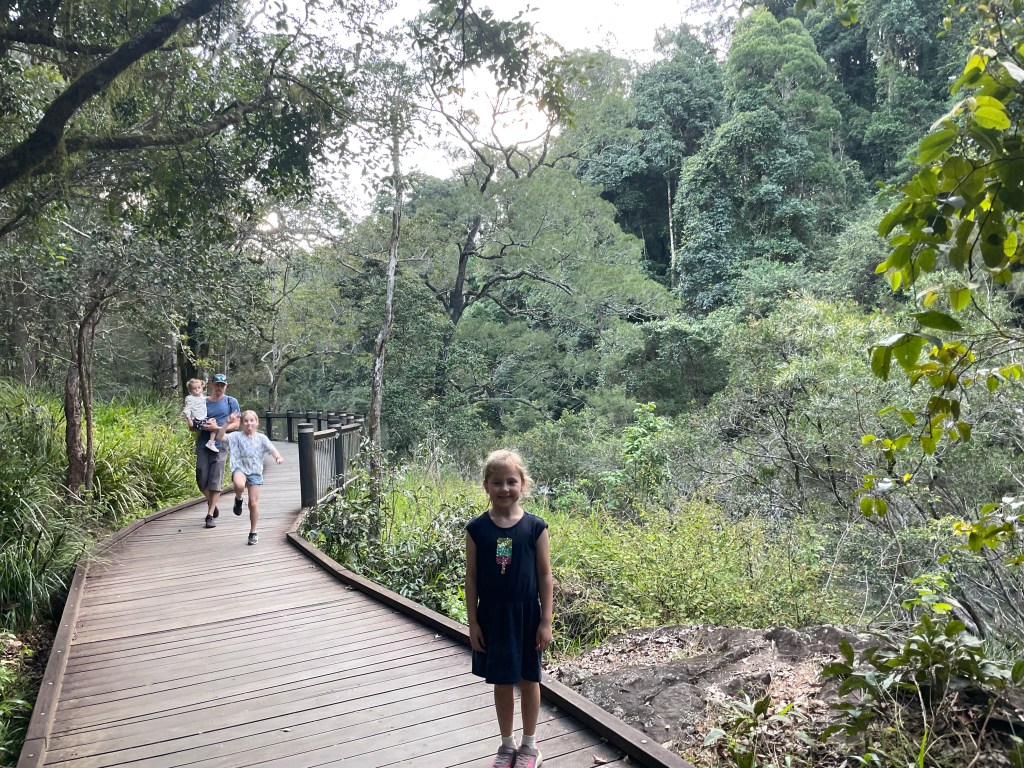 Cape Hillsborough has a number of walking tracks and lookouts around camp, but some of them require you to walk on the sand, so again you have to be tactical with the tides. The lady at reception said that around lunchtime would be best, so we used the morning to crack on with work/meetings for me and homework for the girls. The only annoying thing was the bush turkeys roaming our campsite that kept bothering the girls.