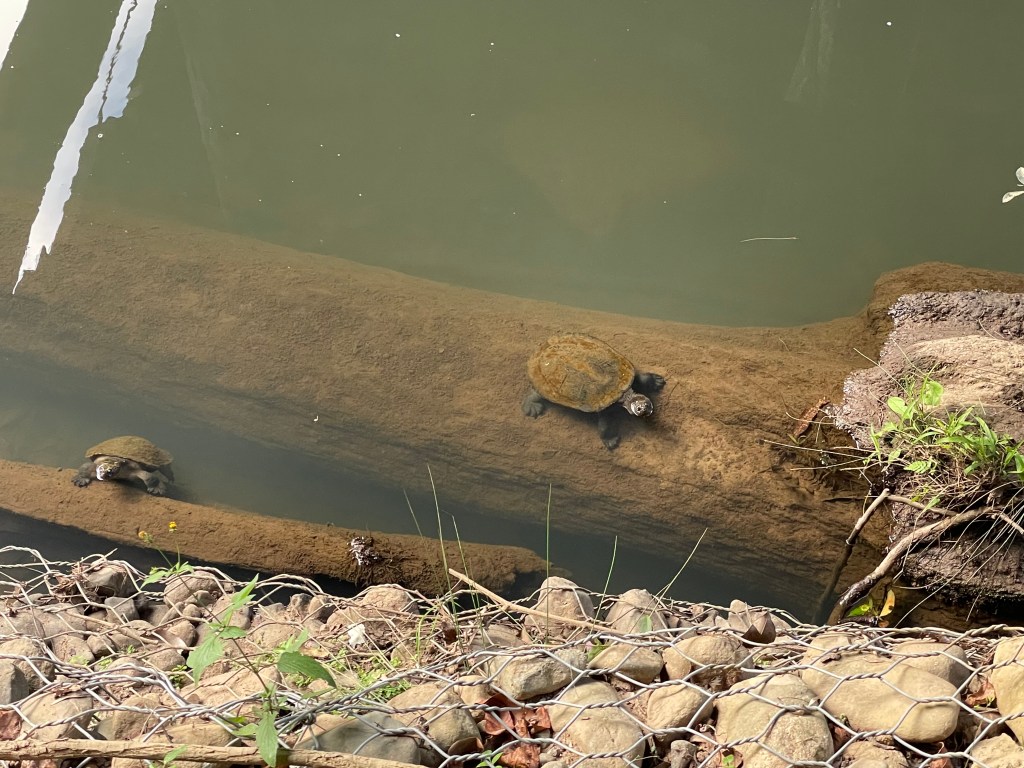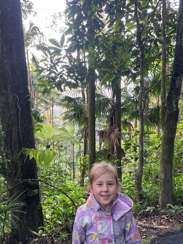 Then it was back across the low tide rocks to the rainforest and up and up and up many stairs to reach the first lookout – Andrew’s Point Lookout. From Diwaia Lookout we could see turtles popping their heads out of the water. The views got better and better with every lookout we visited!