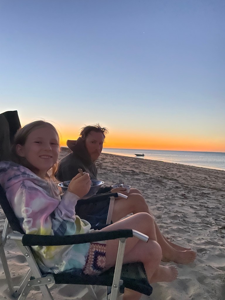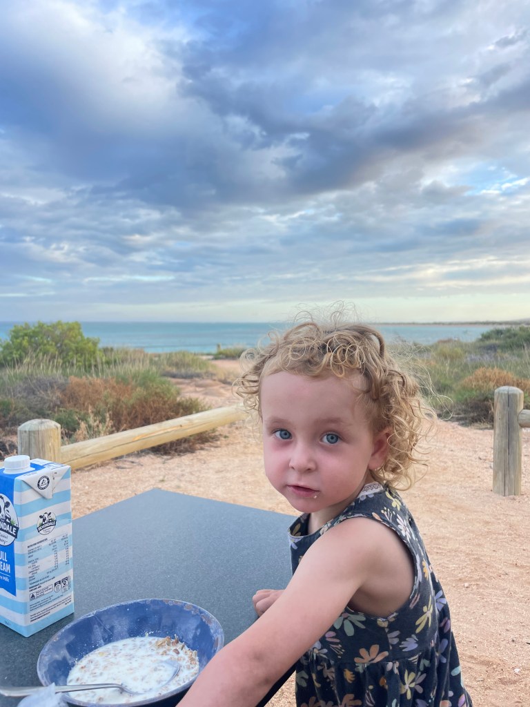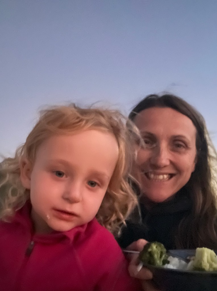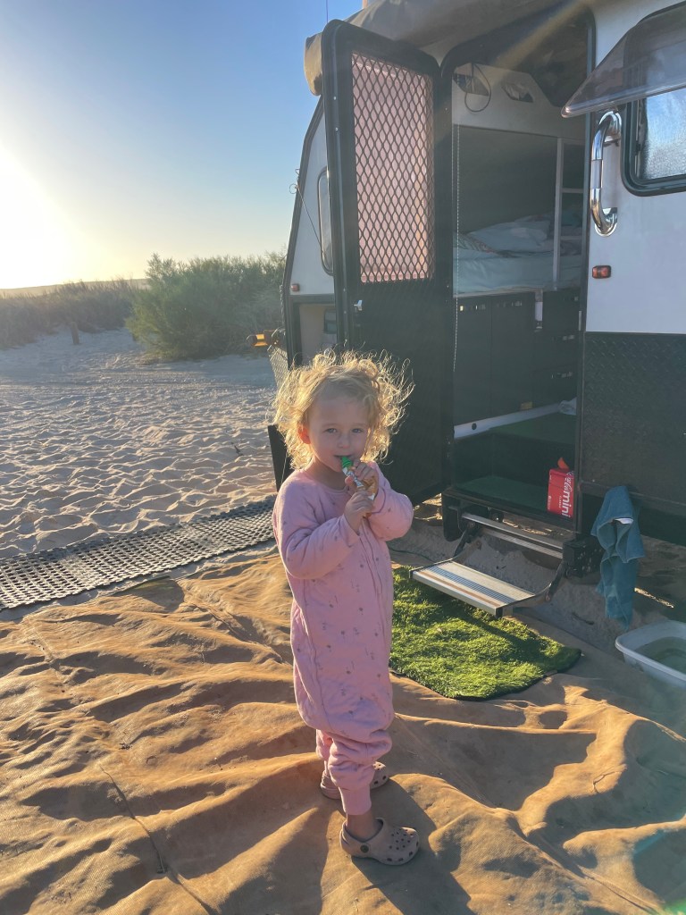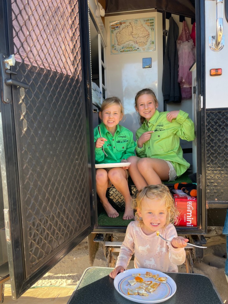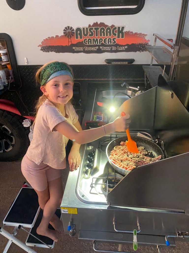 The drive back was actually a lot faster and more pleasant than we thought and before we knew it, we were getting attacked by millions of flies at the rest area. Jazzy put on a brave face and cooked the mince for our tacos (with supervision, don’t worry grandma! 😉).