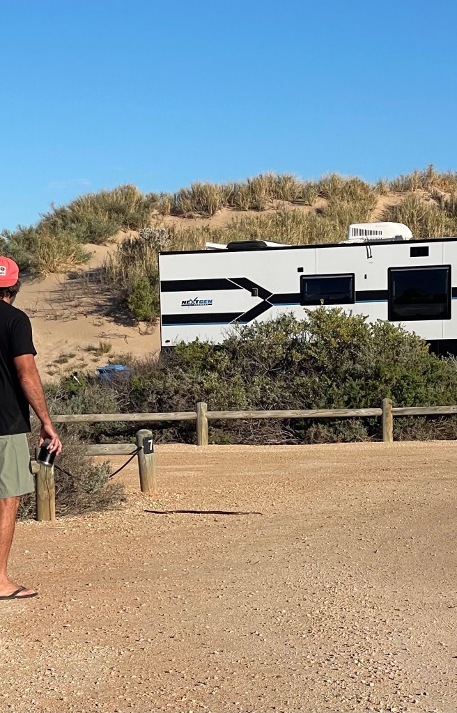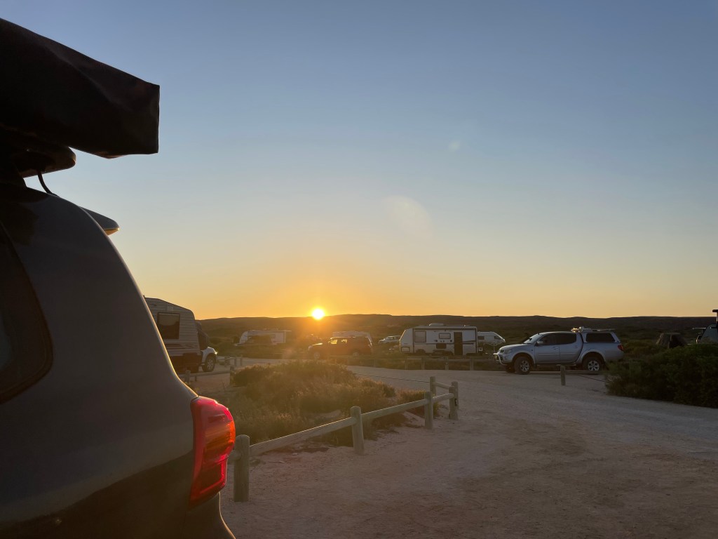 We had a brief stop for fuel & coffee (aka adult fuel) and then dropped the van off at a strategic rest area on the way to Steep Point. According to my research, this is going to be officially the furthest geographical point from home for us on this trip.