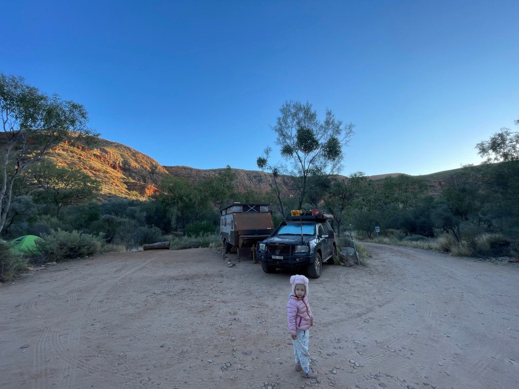 We hit the road and tried to do minimal stops as it was quite the trip to Alice Springs. At least the girls and I had plenty of work/homework to keep us busy on the long drive. Little Scarly got to enjoy some extra iPad time, but she knows to hop out and stretch every time we pull over on the road.