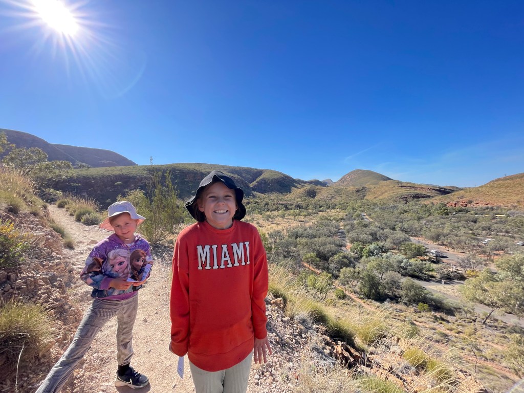 It was a steep climb up to the initial lookout, but totally worth the burn. The girls appreciated the view as well, which was nice. I remember this lookout as the final stop of our 5 day Larapinta trek and it was nice to bring the girls here and share this special place with them.