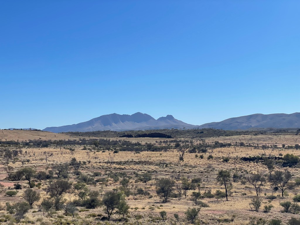 As we continued on, Mount Connor appeared. Mount Connor is a mountain that always gets people confused with Uluru, but our girls were onto it and noticed it was the wrong shape to be Uluru.