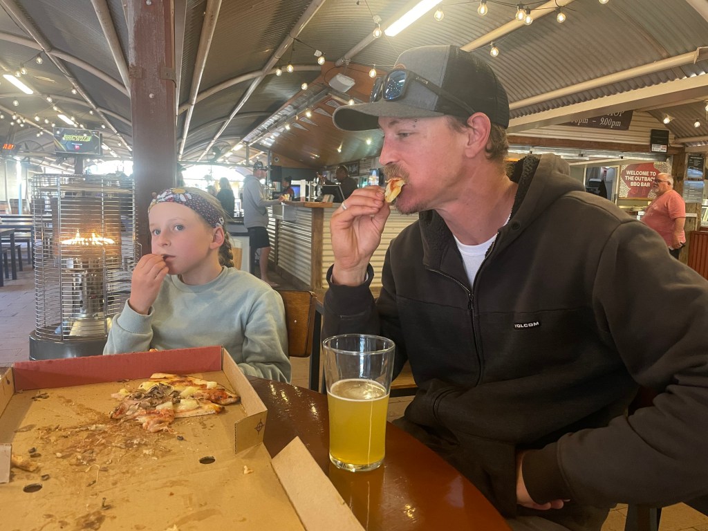 We got back a little more tired than planned and my back was feeling it by the end after 2 back to back huge hikes with Scarly on my back… so I sculled my ginger beer in the carpark while the kids got their maxibon back at camp. We were starting to run a bit short on time as well so just quickly grabbed some pizzas and a beer.