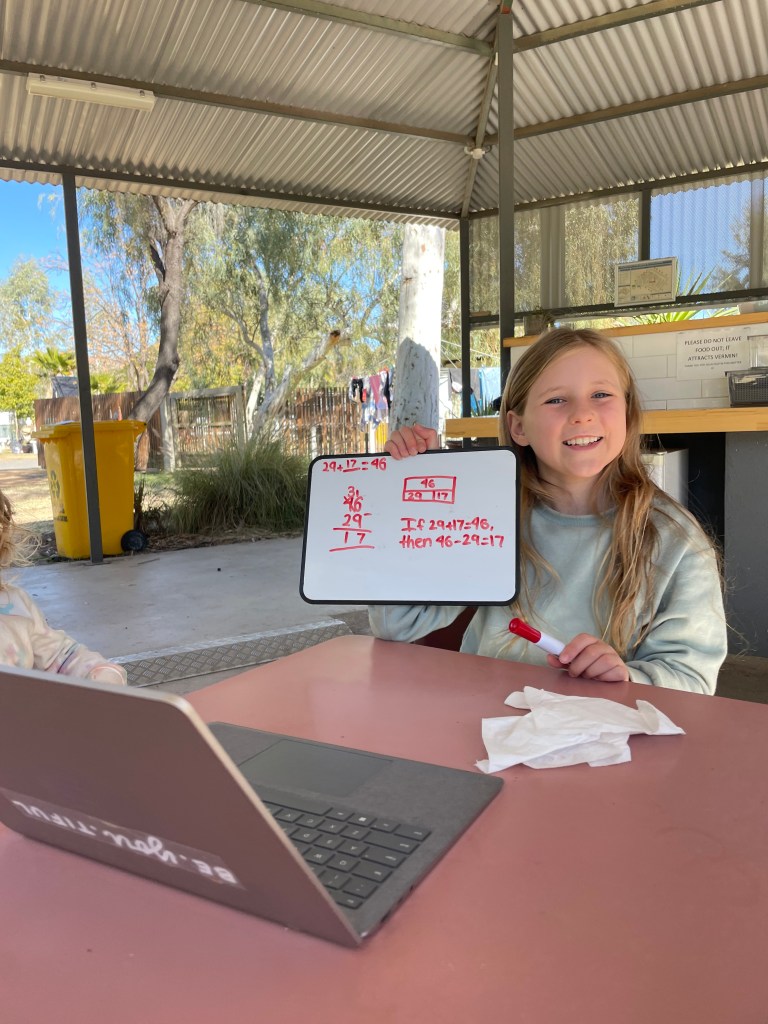 Everyone woke up (alive!) in a good mood ready to start a new week. Chris had a few more things to fix up on the car, while the girls got stuck into some homework and I had a meeting.