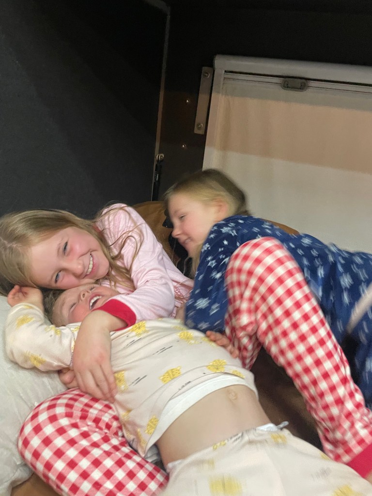 We tried to warm up with some coffee and brekkie and then it was back on the road again. The girls actually just stayed in their pjs as it was too cold to get changed and we weren’t going to be stopping anywhere public or seeing anyone today anyway. I should have done the same 😂