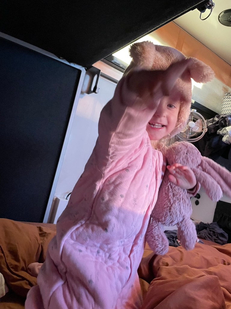 The mini playground at the campsite came in handy for distractions and burning energy. It was also nice to be able to perch up in the sun to catch a breath from the cold. We’re really missing the warmer weather, as it’s been getting down to the zero mark at night and with zero insulation in the van, we really feel the cold!