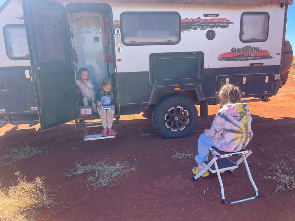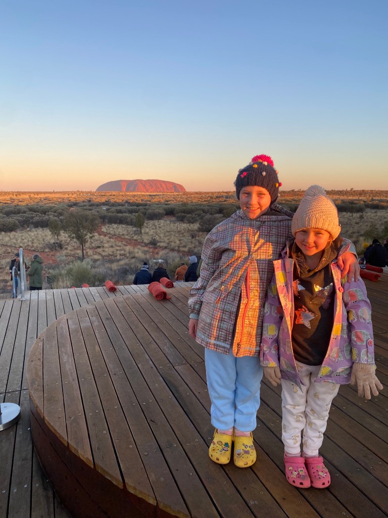 Gosh, you really can’t put into words the magnificence of Uluru, the scale, the colours, the feeling it gives you when you’re looking at it. Chris let the girls sit up on the roof to enjoy an extra special view and they loved it!