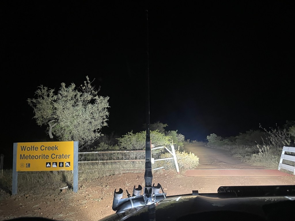 By the time we finally got to Wolfe Creek it was pitch black and the very creepy you expect it to be from the movies and real life stories of times past. I was just trying to hold it together for the kids and not give away my fears! To make matters worse the campsite was full and we just about managed to squeeze into a spot next to someone who was already parked up.