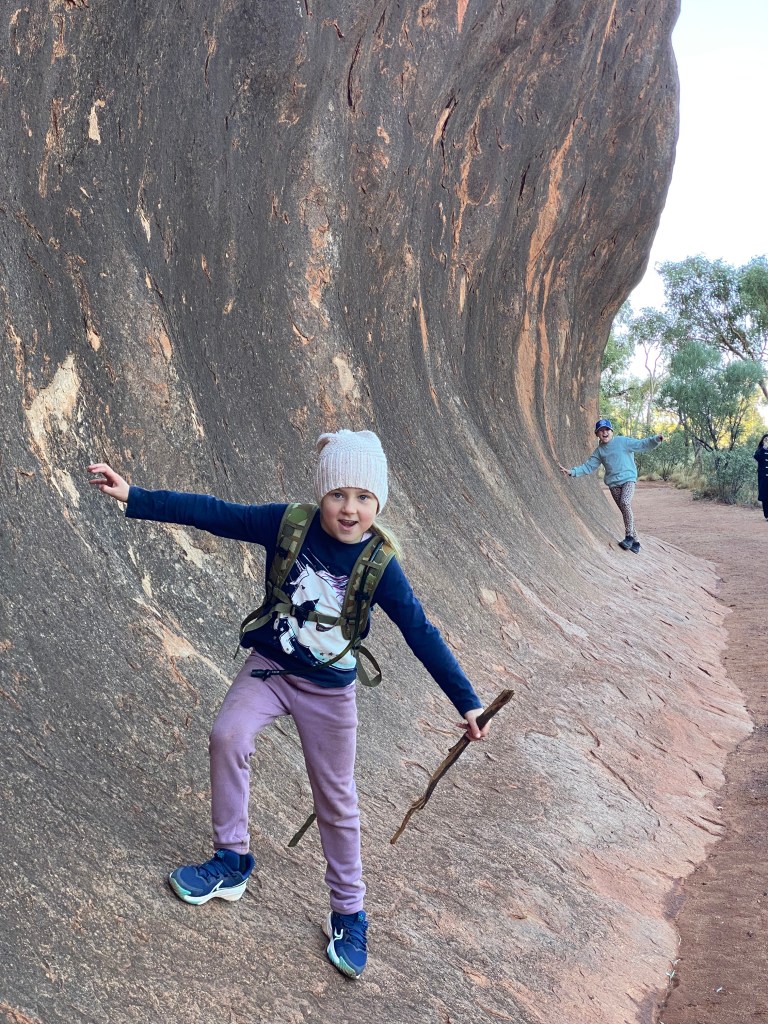 It was fascinating to learn about some of the Dreamtime stories and to visit some of the sacred and connected siges. The girls also loved identifying different animals in the rock faces and exploring the ever changing geology of Uluru. Jazzy’s favourite part was the “wave” that she enjoyed surfing.