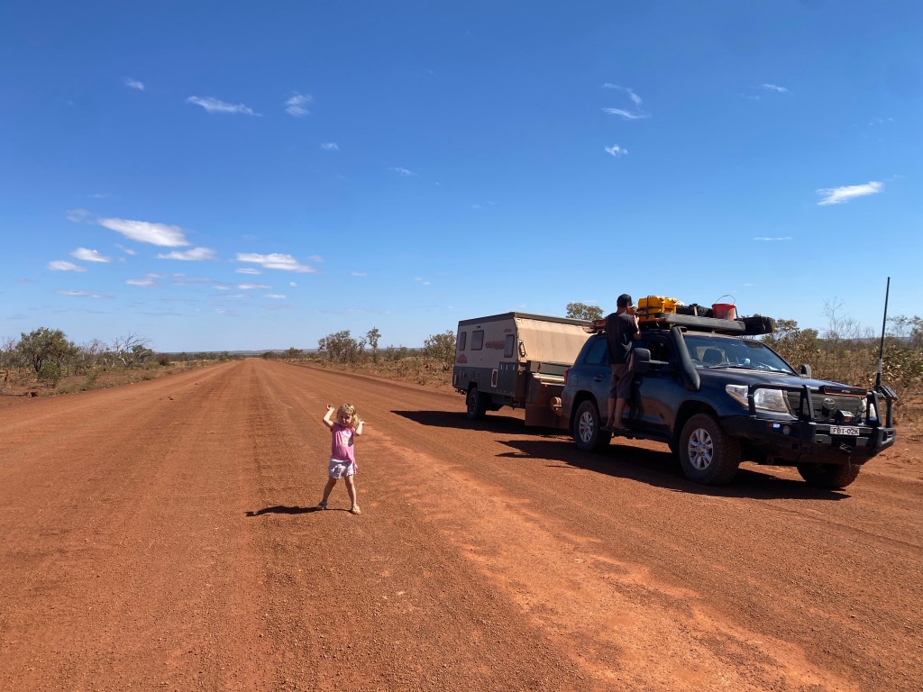 Then it was time to hit the Tanami track! We’ve researched all the different stops and fuel options and hopefully we would have enough in the Jerry cans to last us until Halls Creek! It was actually a pretty pleasant drive and we stopped for some lunch at Tillmouth Well. It had a playground and the food was yum, so happy days.